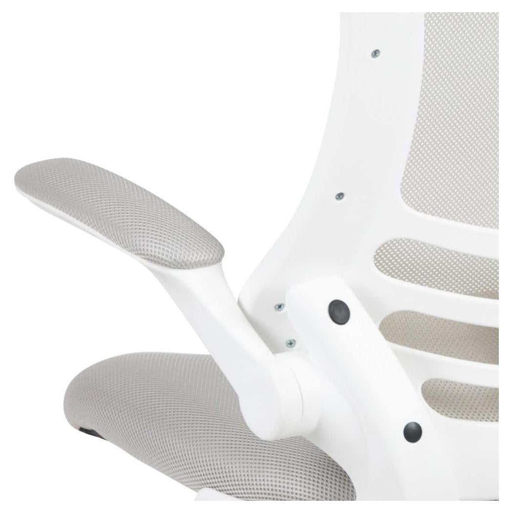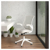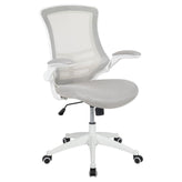 Break free from the norm of conventional office seating with this ultra-modern white frame office chair. The mesh back swivel ergonomic task office chair will exceed your needs in comfort and style. Beat those hot summer days with the ventilated mesh back behind you, offering up huge airflow. The curved backrest has lower lumbar support to provide you with good posture support.