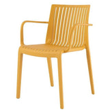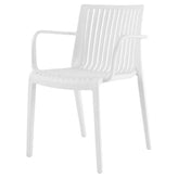 The simple yet elegant design of the Milos Dining and Armchairs makes for extremely comfortable ergonomic sitting pieces. The slightly curved back supports all body types and spices up any setting. The variation in design of both chairs allow for multi-functional purposes. Designed with convenience in mind, the dining chairs easily stack for effortless storage, and can be unstacked and set out when needed with ease. While the armchair serves as the perfect resting place to read a book or enjoy family meals under the stars. The chairs are made from high quality polypropylene that will not rust or fade and easily wipes clean with water.