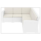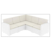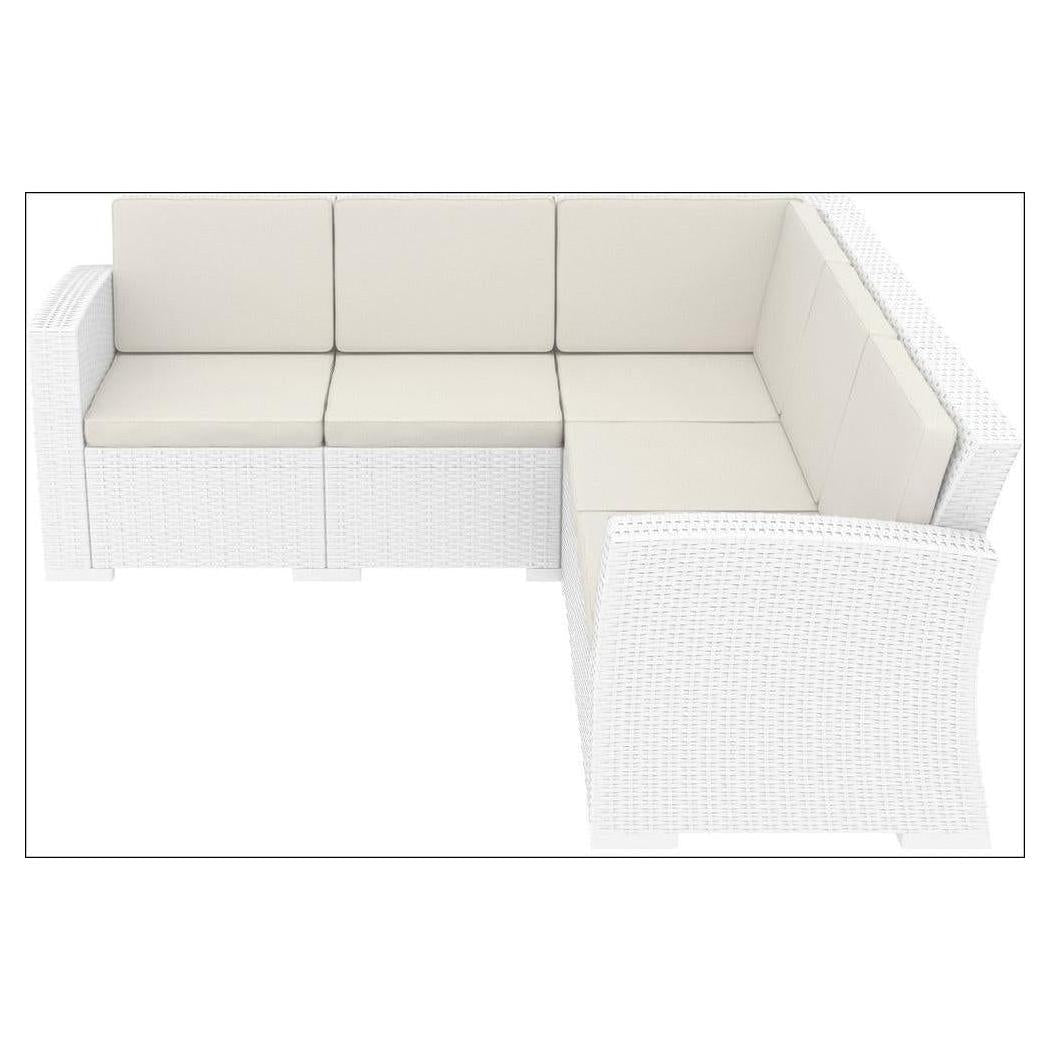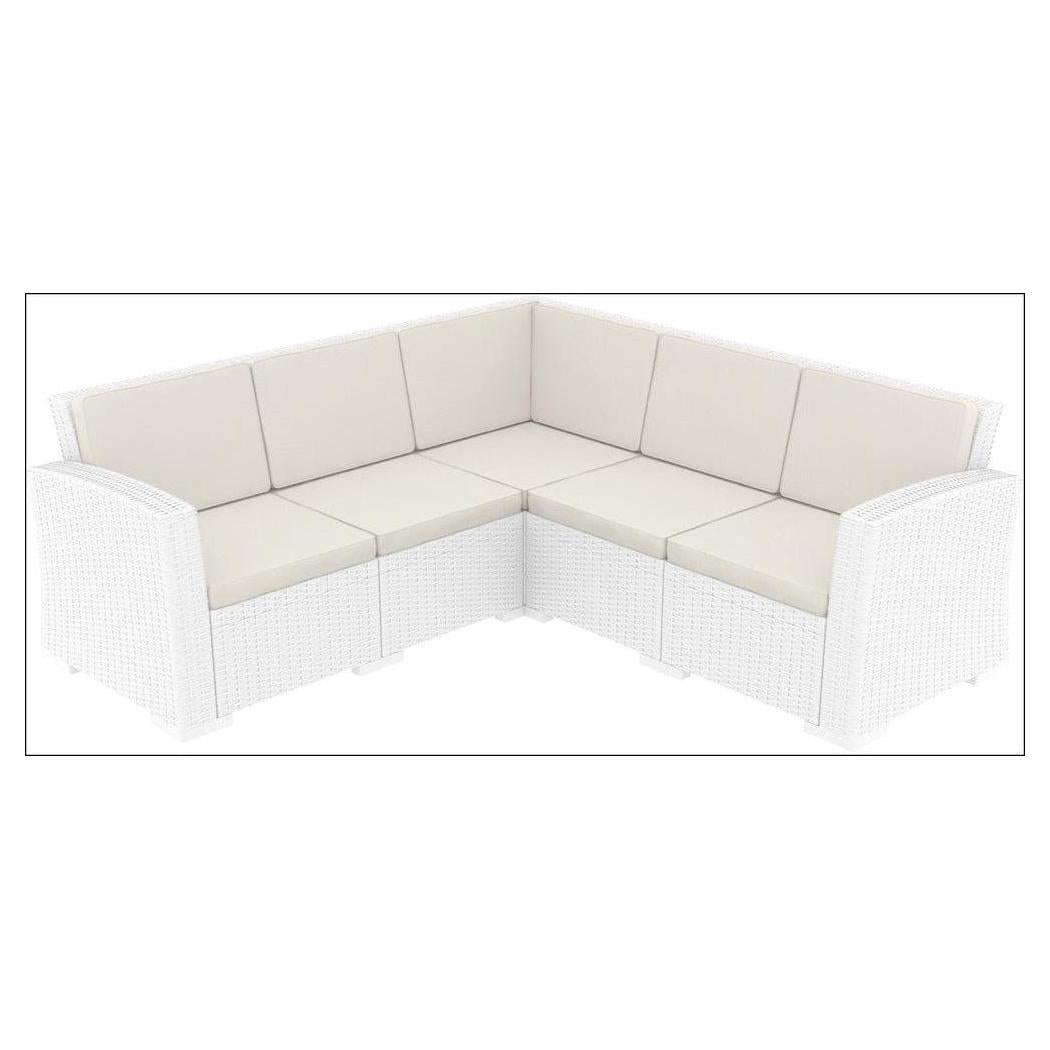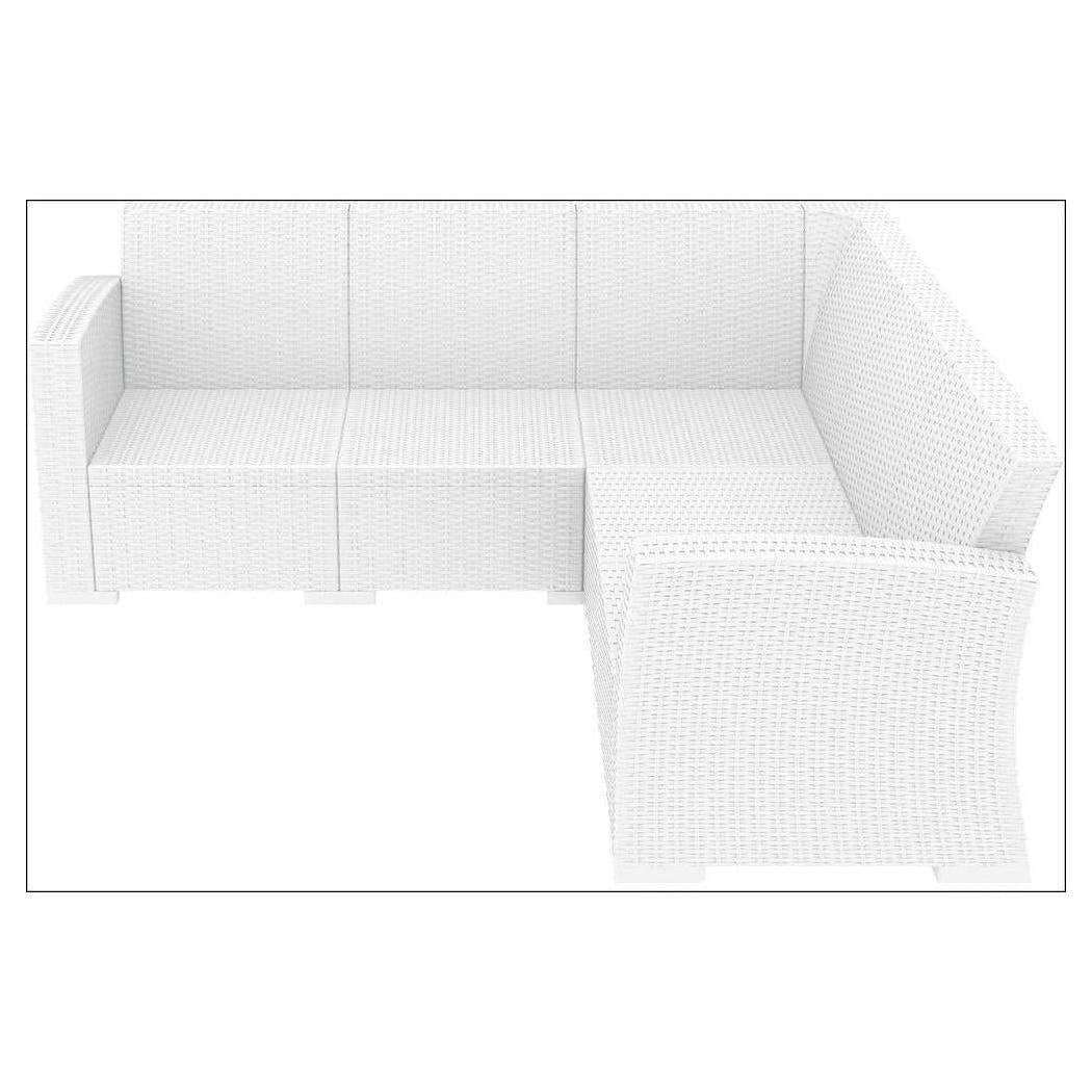 Your restaurant will look great with this durable, foodservice grade Monaco Resin Patio Sectional 5 piece White with Cushion ISP834-WH catering to the premium price point. This sofa fits in nicely for restaurants desiring a modern design. This sofa is made of the highest-quality resin. This sofa is available in white color. This product is backed by our customer satisfaction return policy and our best price guarantee. Monaco wickerlook sectional with acrylic fabric cushions. Wickerlook resin is a natural looking un-woven one piece furniture technology. No metal parts to rust, no moving parts that can break. Made for commercial durability. UV treated. Assembly required. |