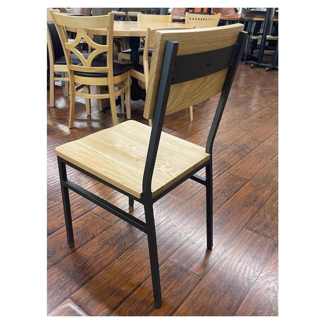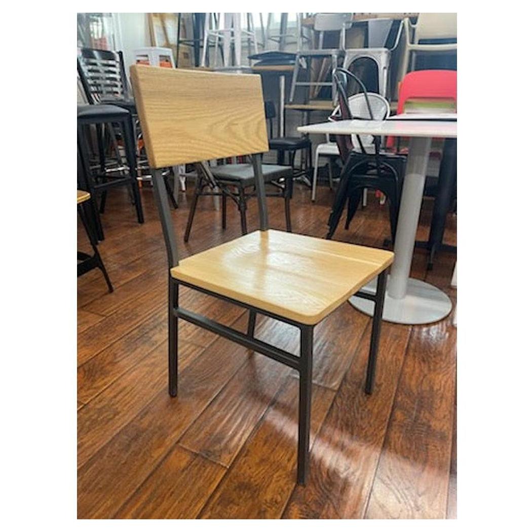 Our Natural Oak Industrial Style Chair with Dark Gray Metal Frame is of the highest quality, and is designed for commercial grade foodservice needs. This product is protected by our one year product warranty.