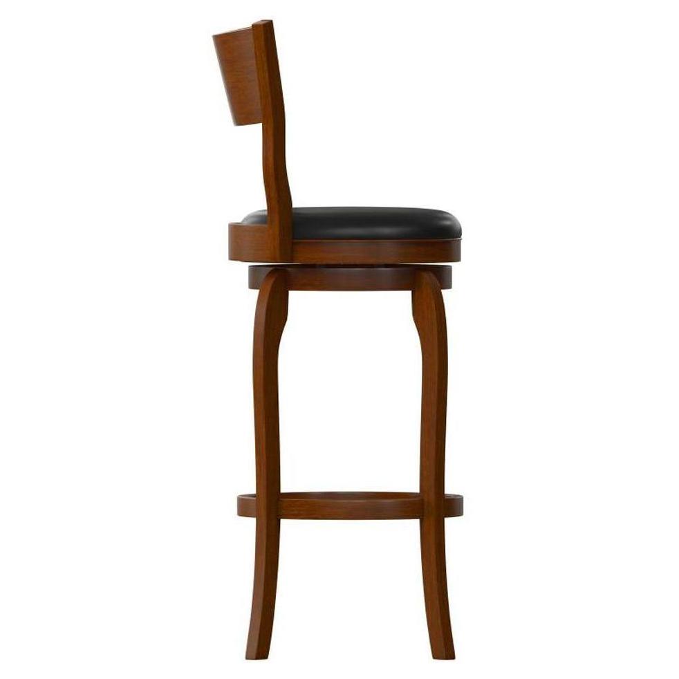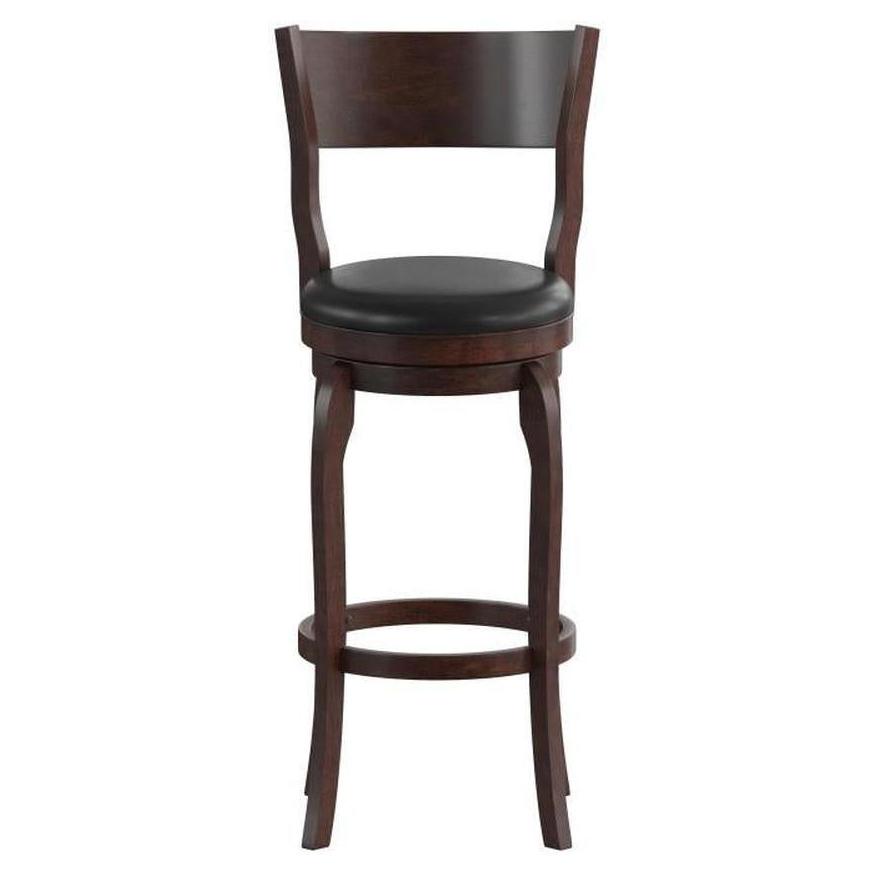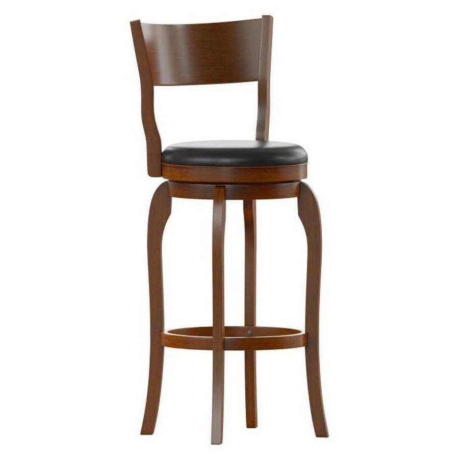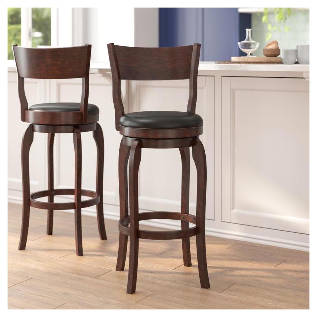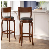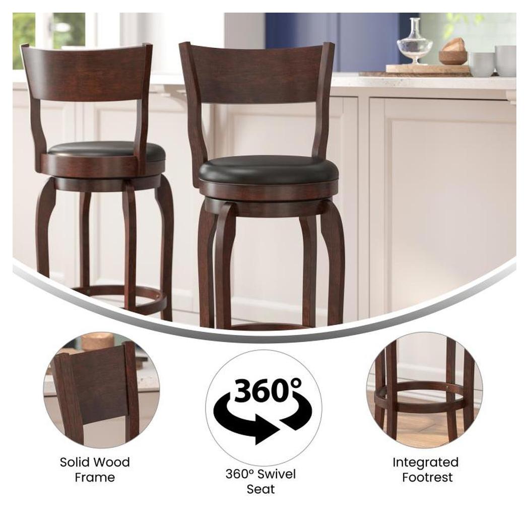 - Nichola Classic Upholstered Open Back Swivel Bar Height Pub Bar Stool with Bowed Wooden Frame