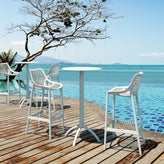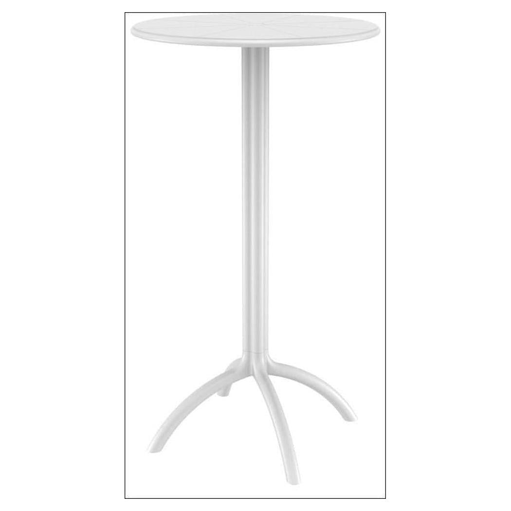 Octopus resin outdoor bar table with 24 inch round top. Made of high quality polypropylene. Extremely durable for outdoor environments. Octopus table is perfect for pool, beach and heavy use areas. Resistant to suntan oils, chlorine and saltwater. UV protected. Can be disassembled. For indoor and outdoor use.