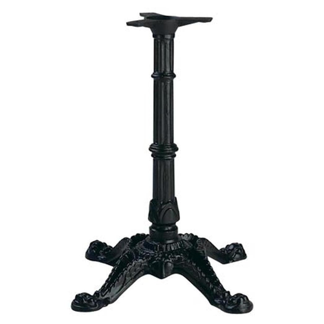 4 prong Cast Iron bistro table base with black finish. This 4-prong table base is larger in size and is suitable for larger table top sizes. This model has classic styling and beautiful design. This table base will add an elegant touch to a restaurant or hotel seating area. It fits classic styling applications for winery seating, cafe tables and bar tables. Its strong and durable cast iron construction facilitates easy use in commercial furniture applications. Will accommodate a 36'' to 40" table top. Also note 24" Spread.