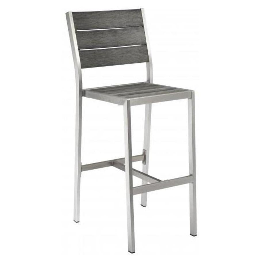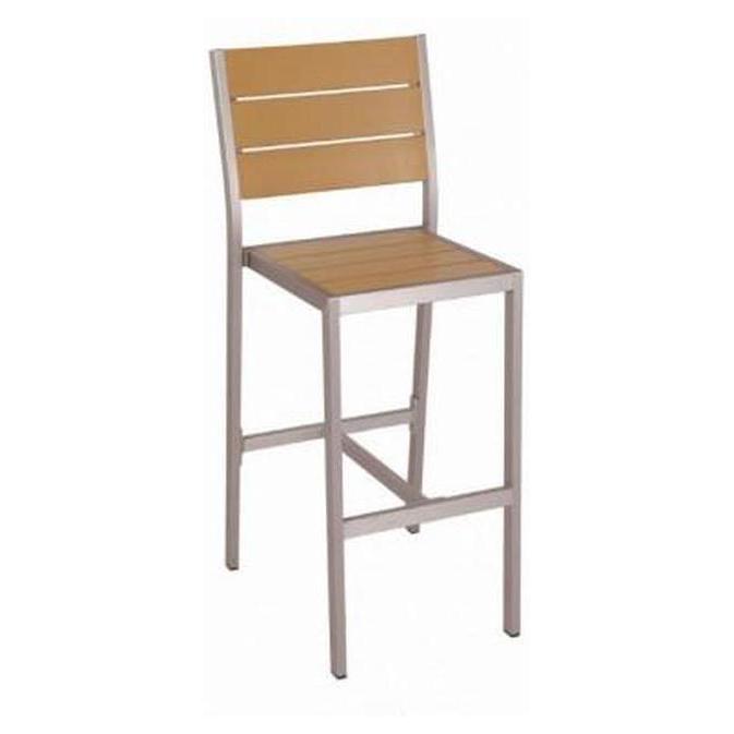 - Outdoor Aluminum Bar Stool with Synthetic Teak Slats