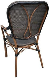 - Outdoor Brown Aluminum Arm Chair with Black Poly Woven Seat and Back