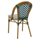 Metal Chair with Bamboo-Style Frame and Green and White Chevron Poly Woven Seat & Back, Outdoor Use