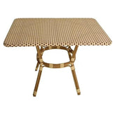 Stylish, Sturdy, and Sophisticated! Discover the Toulouse French Bistro Glass Top Table, now in 48" x 36" and 30" high. Featuring hand-woven wicker, a brush-stroke painted aluminum frame, and marine-grade outdoor Polyurethane (PE), this table is mold-resistant and rust-proof.