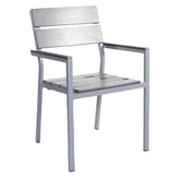This outdoor Seaside Arm Chair is commercial grade and designed to look great in your foodservice location. This arm chair fits in nicely for restaurants desiring a modern design. It is made of aluminum. This product is backed by our customer satisfaction return policy and our best price guarantee.