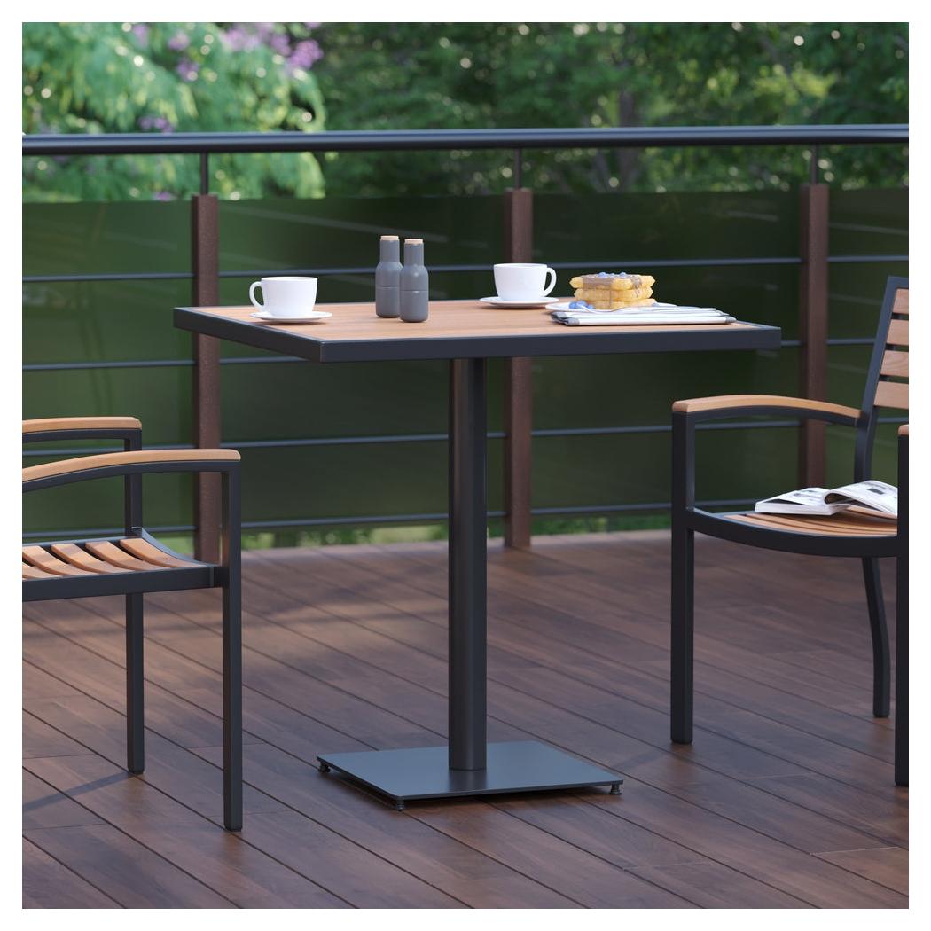 - Outdoor Patio Bistro Dining Table with Faux Teak Poly Slats 30" Square