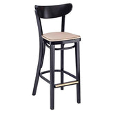 European Bentwood Bent Oval Bar Stool, Beechwood frame in a variety of finishes, optional upholstery (new soho, upgraded, COM) vinyl, footrest and nail heads at additional charge.