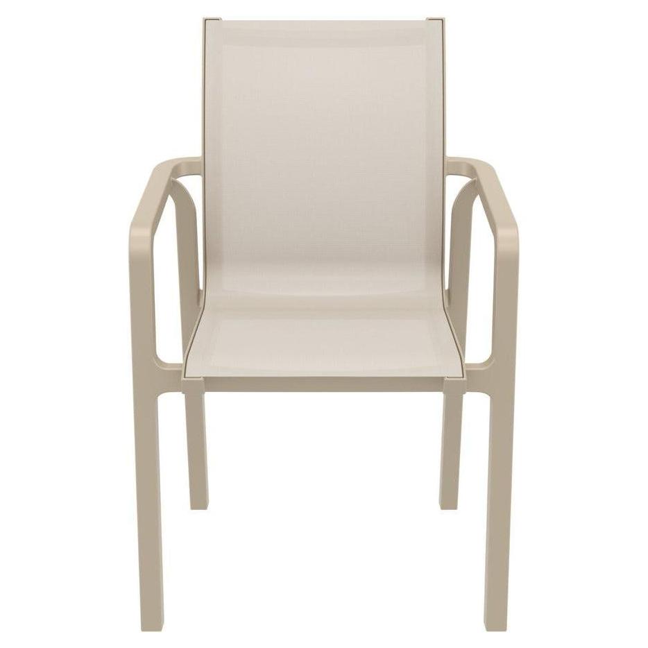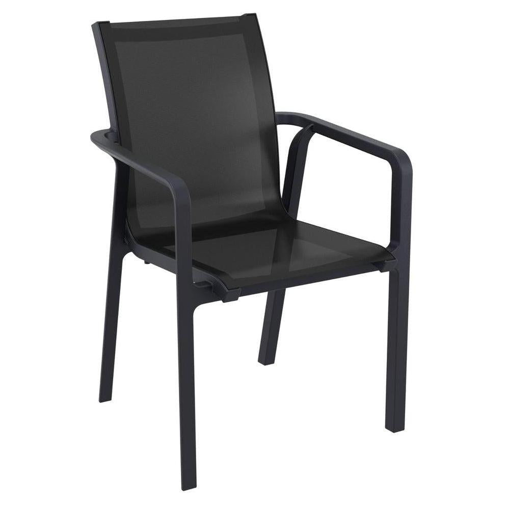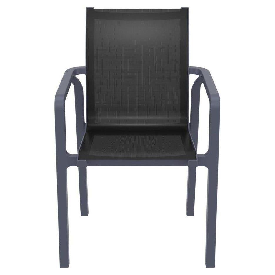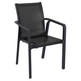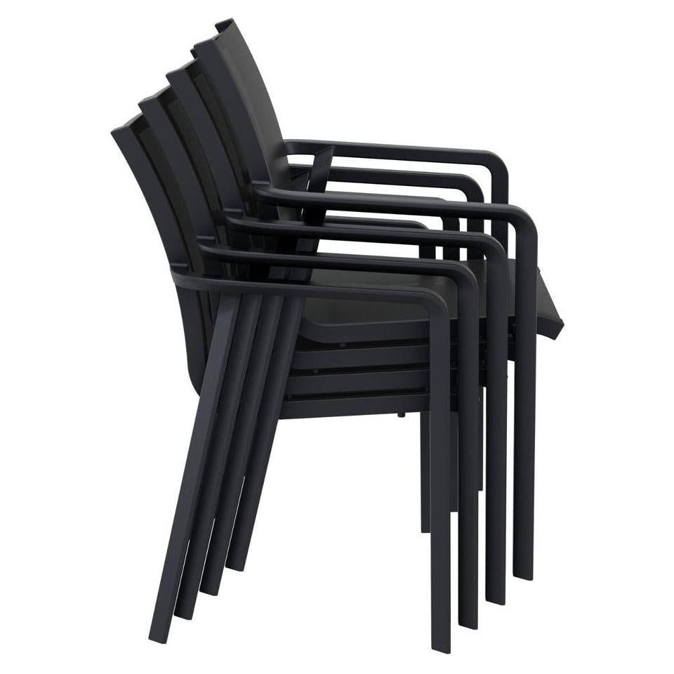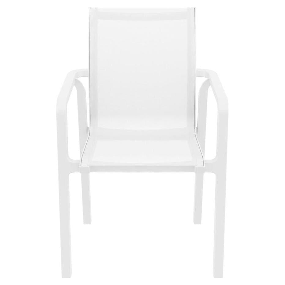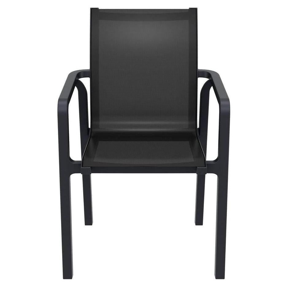 Must be ordered in quantities of 2. Price listed is per item price. Pacific resort quality dining arm chair. Simple sleek design with commercial strength. Sling is made with Serge Ferrari mesh fabric. Chair is very comfortable and no need for cushions. Stacks for easy storage. Frame made of marine grade resin polypropylene. Extremely durable and comfortable. Commercial grade. High quality commercial grade resin furniture - featuring refined designs, that are weatherproof, comfortable, and functional. Preferred for heavy use areas, pool sides, patios, beach and balcony use. Items are resistant to UV, salt, weather, sun tanning oils.