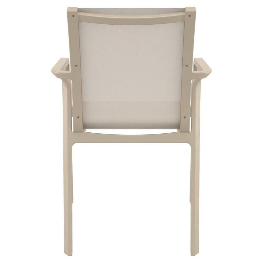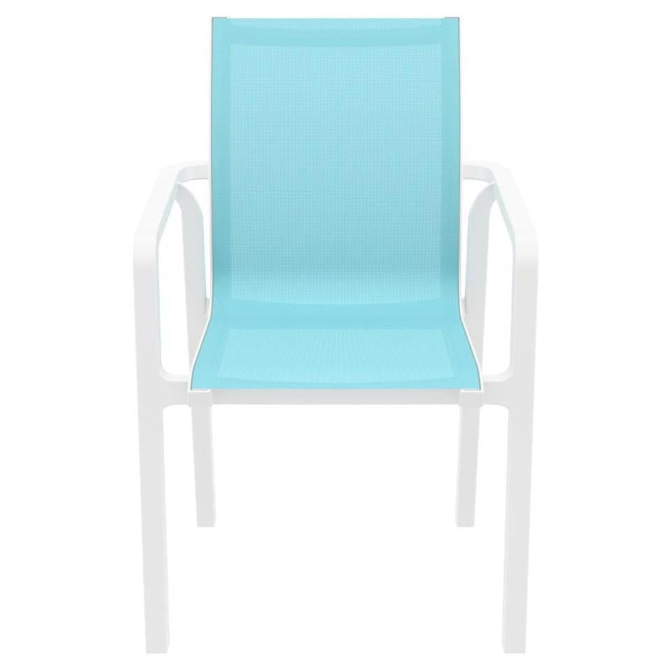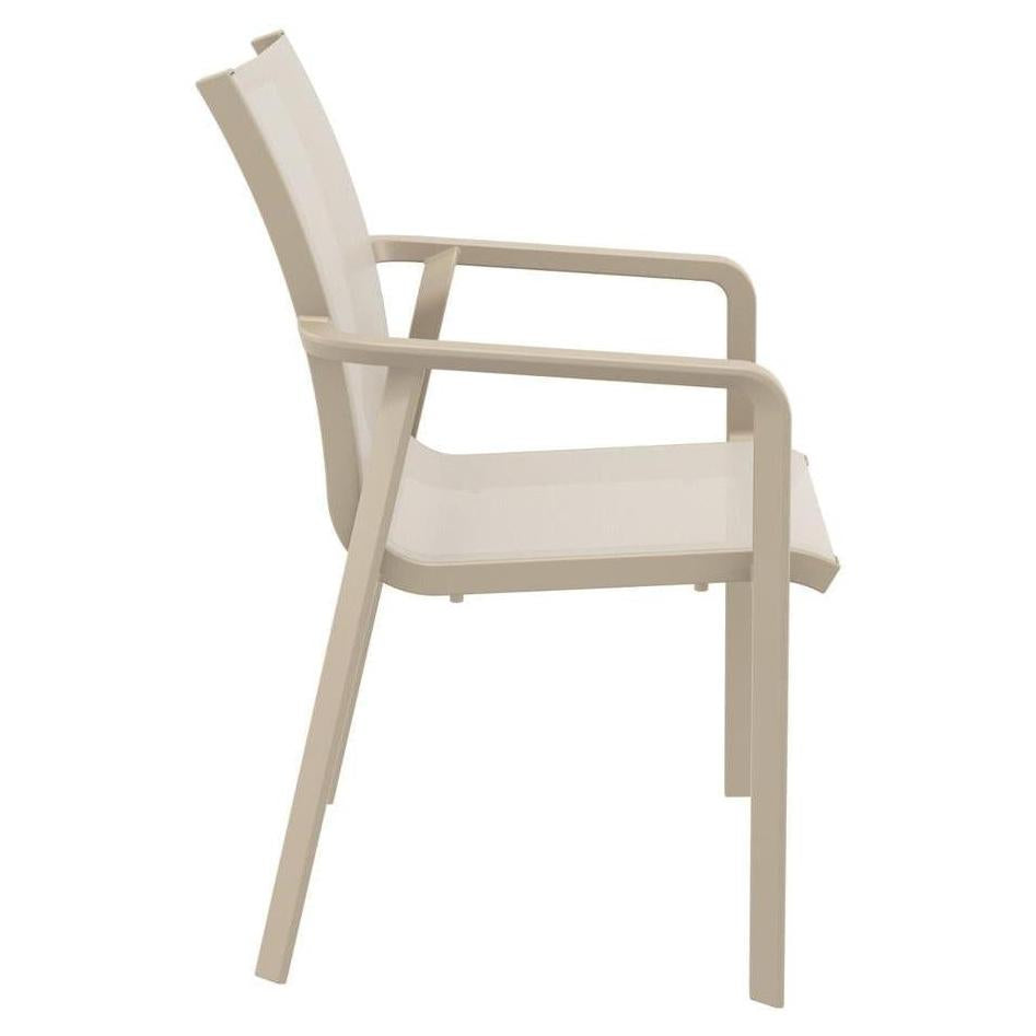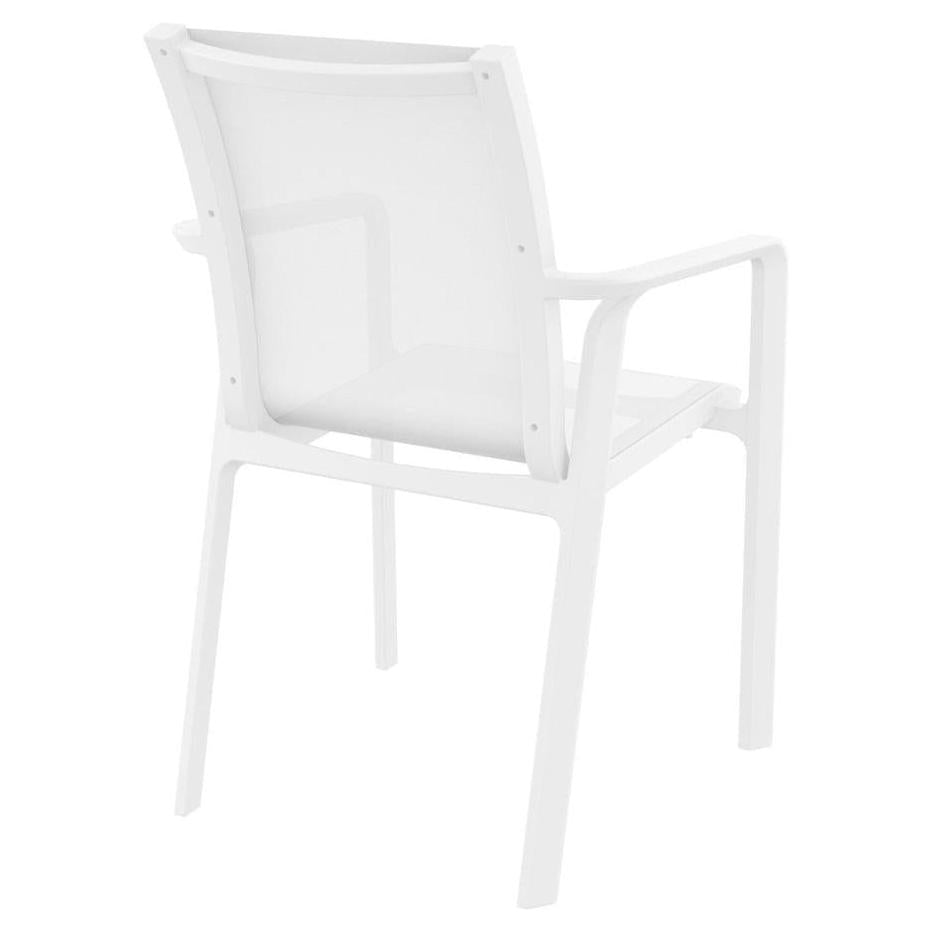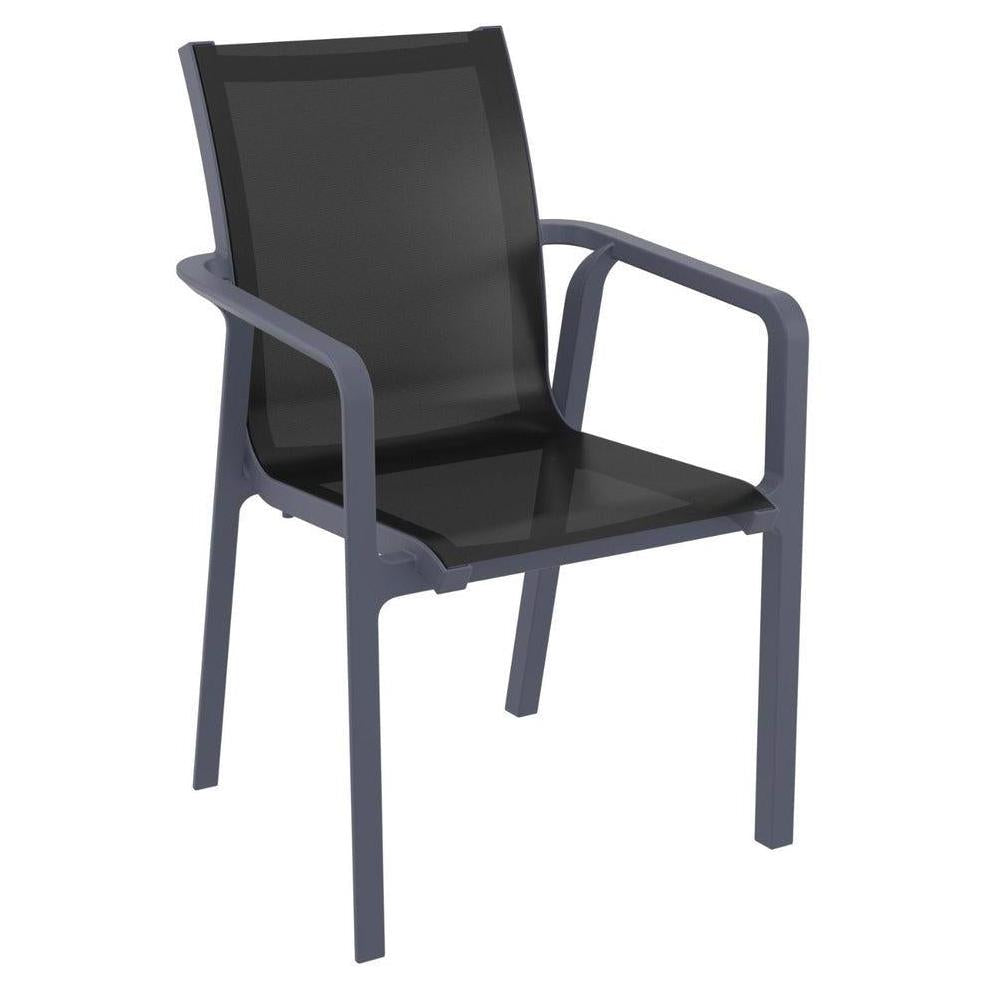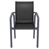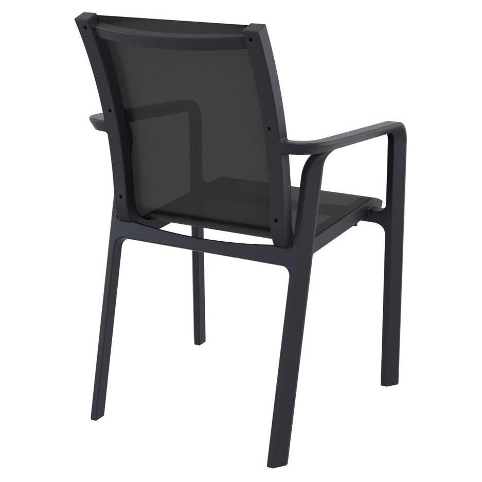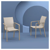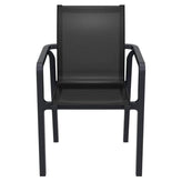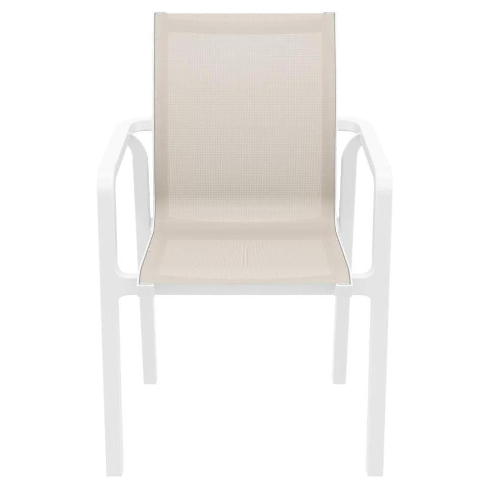 Must be ordered in quantities of 2. Price listed is per item price. Pacific resort quality dining arm chair. Simple sleek design with commercial strength. Sling is made with Serge Ferrari mesh fabric. Chair is very comfortable and no need for cushions. Stacks for easy storage. Frame made of marine grade resin polypropylene. Extremely durable and comfortable. Commercial grade. High quality commercial grade resin furniture - featuring refined designs, that are weatherproof, comfortable, and functional. Preferred for heavy use areas, pool sides, patios, beach and balcony use. Items are resistant to UV, salt, weather, sun tanning oils.