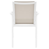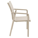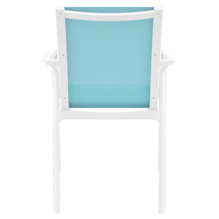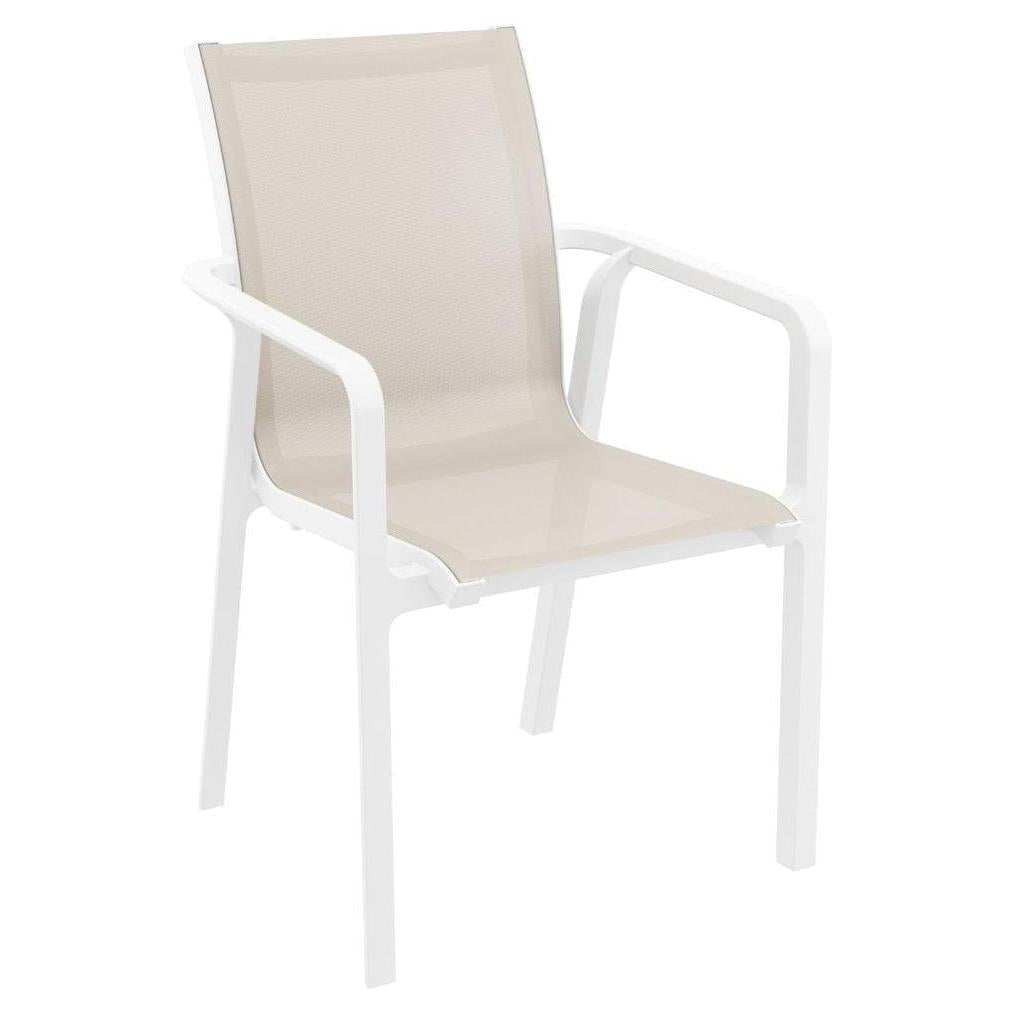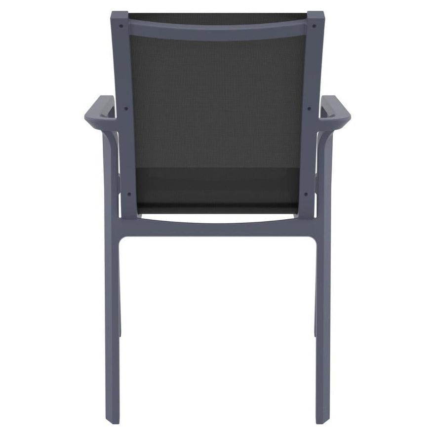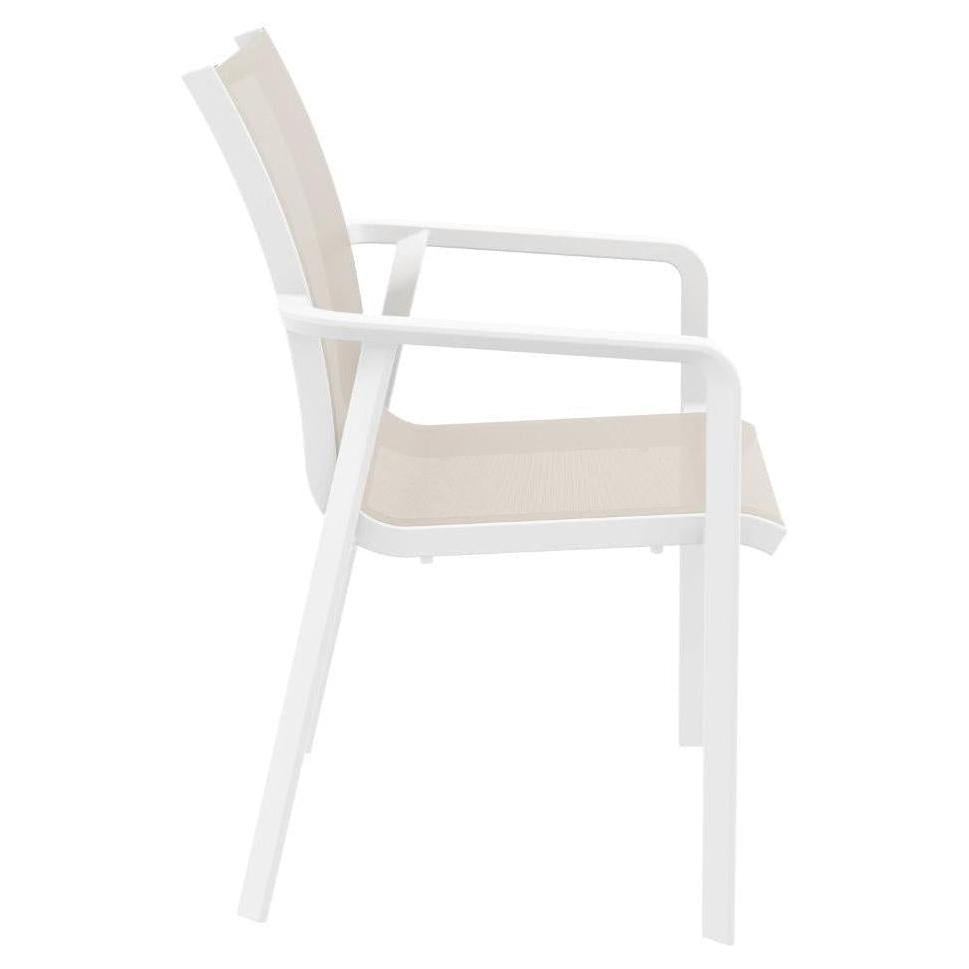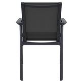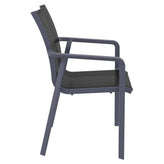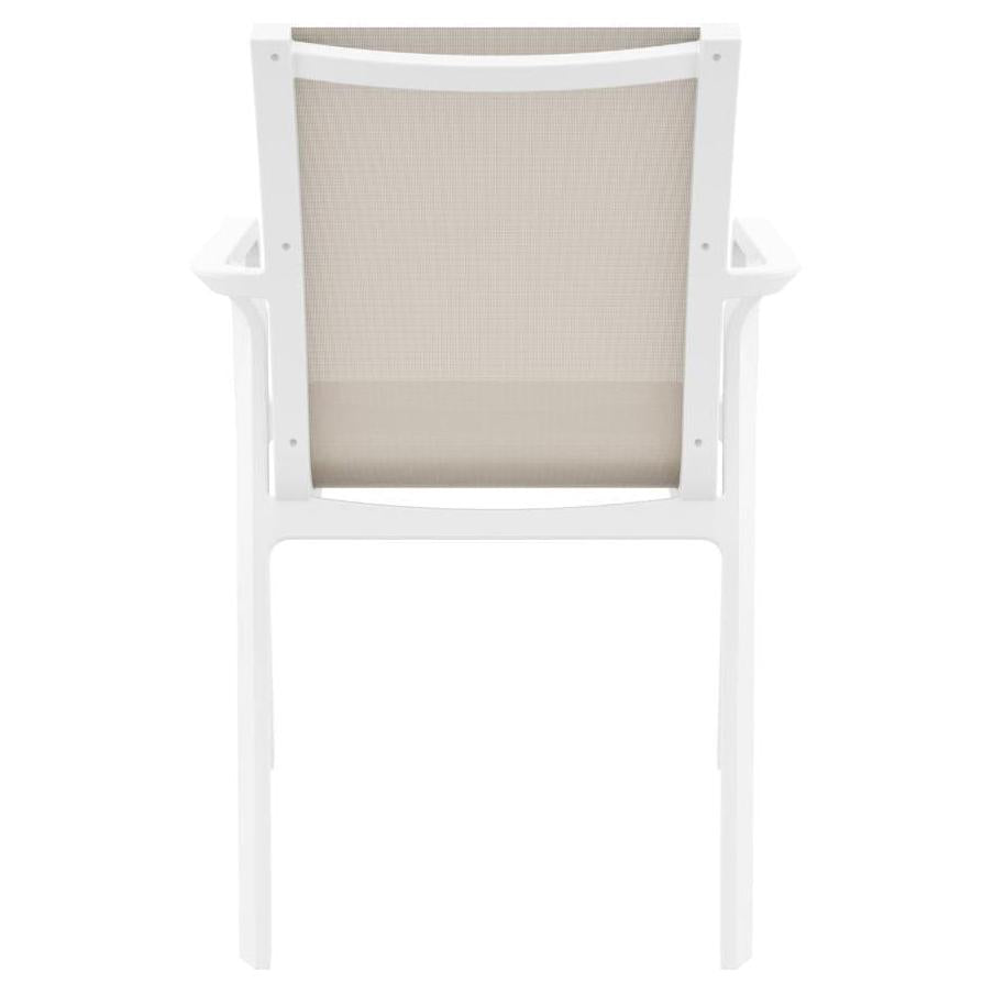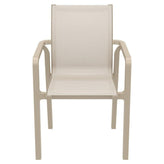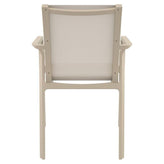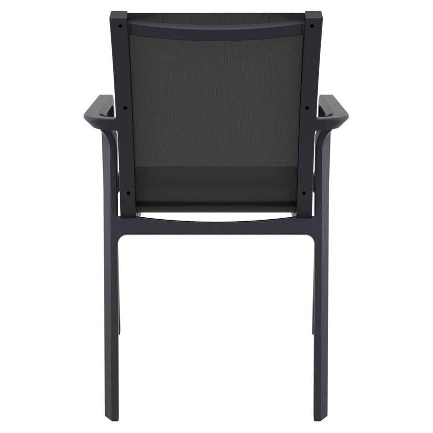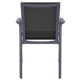 Must be ordered in quantities of 2. Price listed is per item price. Pacific resort quality dining arm chair. Simple sleek design with commercial strength. Sling is made with Serge Ferrari mesh fabric. Chair is very comfortable and no need for cushions. Stacks for easy storage. Frame made of marine grade resin polypropylene. Extremely durable and comfortable. Commercial grade. High quality commercial grade resin furniture - featuring refined designs, that are weatherproof, comfortable, and functional. Preferred for heavy use areas, pool sides, patios, beach and balcony use. Items are resistant to UV, salt, weather, sun tanning oils.
