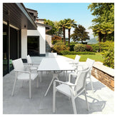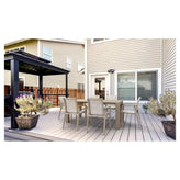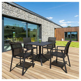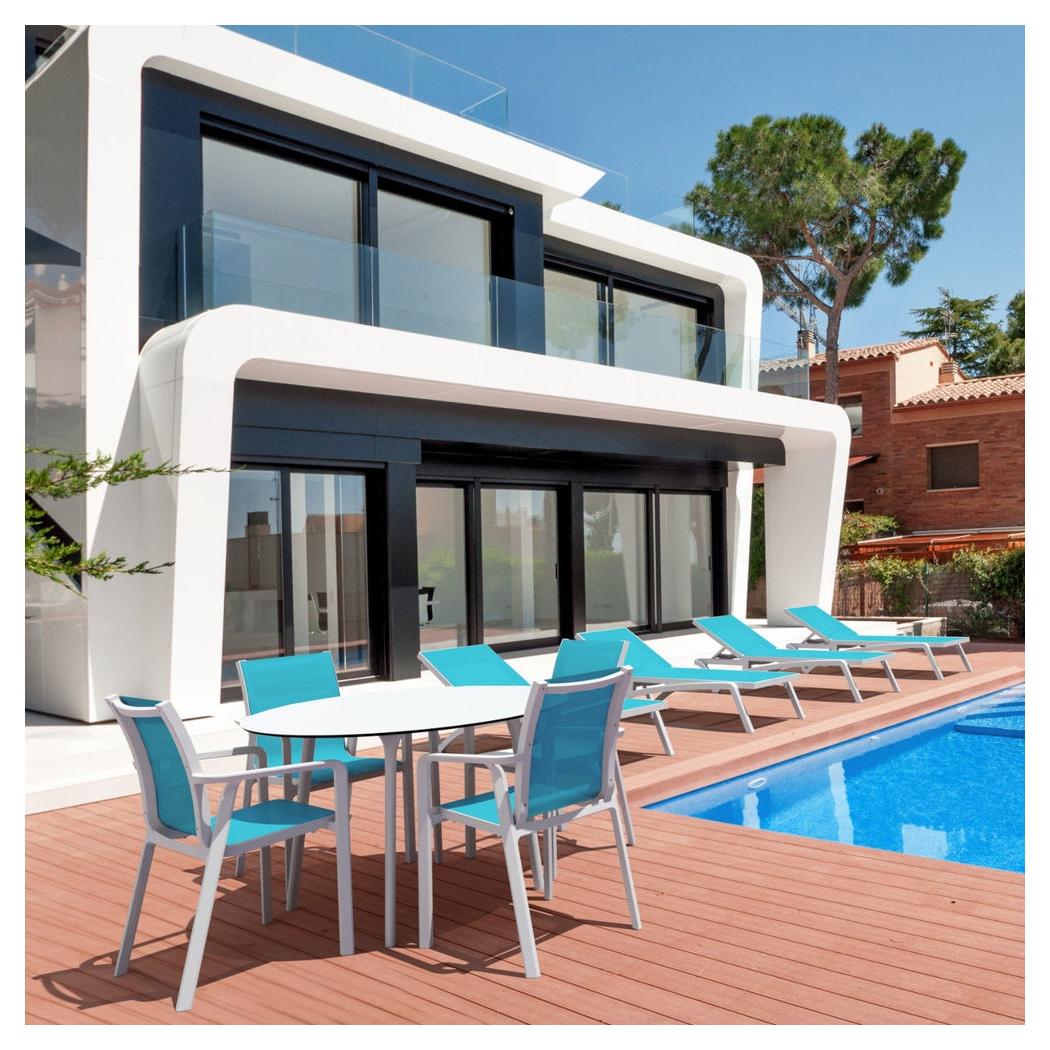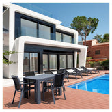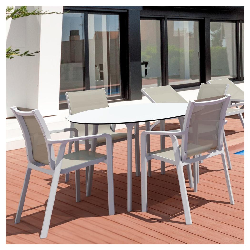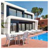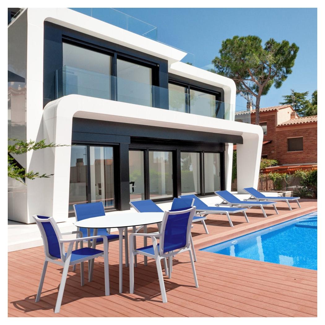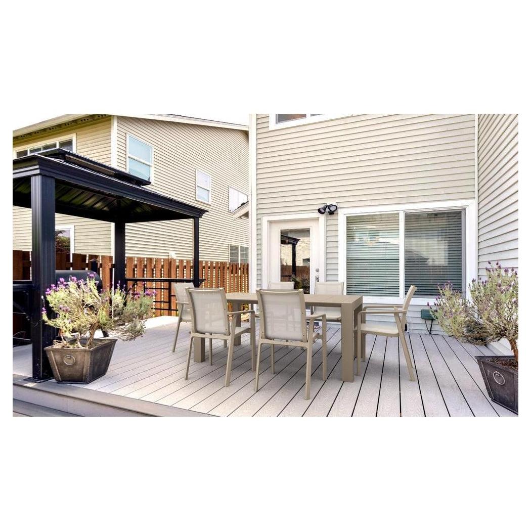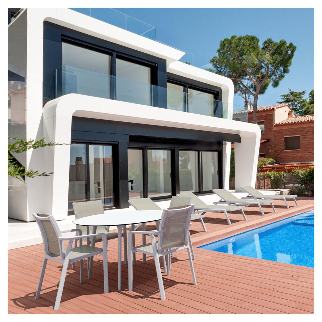 Must be ordered in quantities of 2. Price listed is per item price. Pacific resort quality dining arm chair. Simple sleek design with commercial strength. Sling is made with Serge Ferrari mesh fabric. Chair is very comfortable and no need for cushions. Stacks for easy storage. Frame made of marine grade resin polypropylene. Extremely durable and comfortable. Commercial grade. High quality commercial grade resin furniture - featuring refined designs, that are weatherproof, comfortable, and functional. Preferred for heavy use areas, pool sides, patios, beach and balcony use. Items are resistant to UV, salt, weather, sun tanning oils.