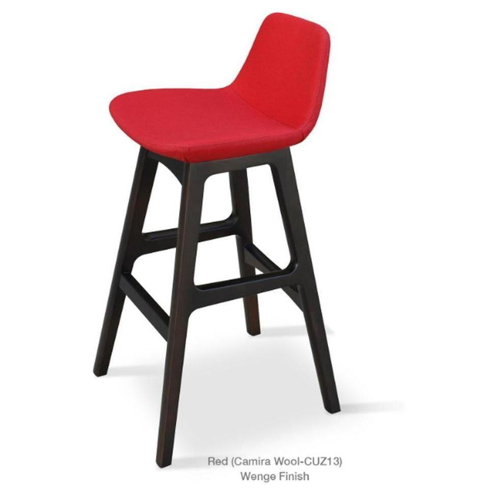 This Pera Wood Bar Stool is a commercial grade bar stool designed to last and look great in your food service location. The bar stool works great for modern design. It is an armless bar stool and is made of wood designed for the premium price point. This product is protected by our low price guarantee and our customer satisfaction return policy.