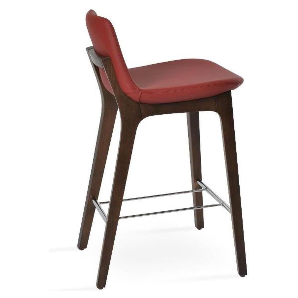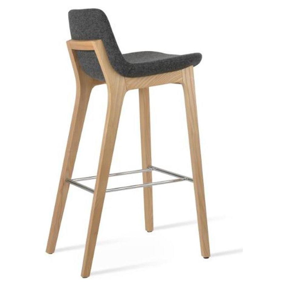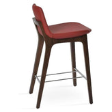 | Pera Wood Handle Back is a unique counter and bar stool with a comfortable upholstered seat and backrest on a walnut finish base. The seat has a steel structure with “S†shape springs for extra flexibility and strength. This steel frame is molded by an injecting polyurethane foam. Pera seat is upholstered with a removable velcro slip cover. The stool is specially recommended for commercial use with its durability. Upon request, stainless steel footrest will be used especially for contract projects. | |
