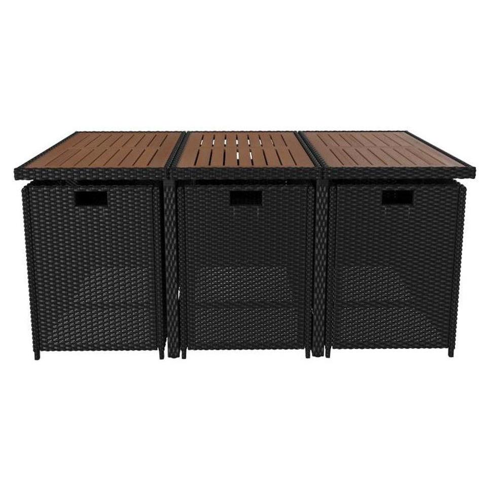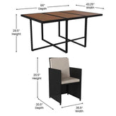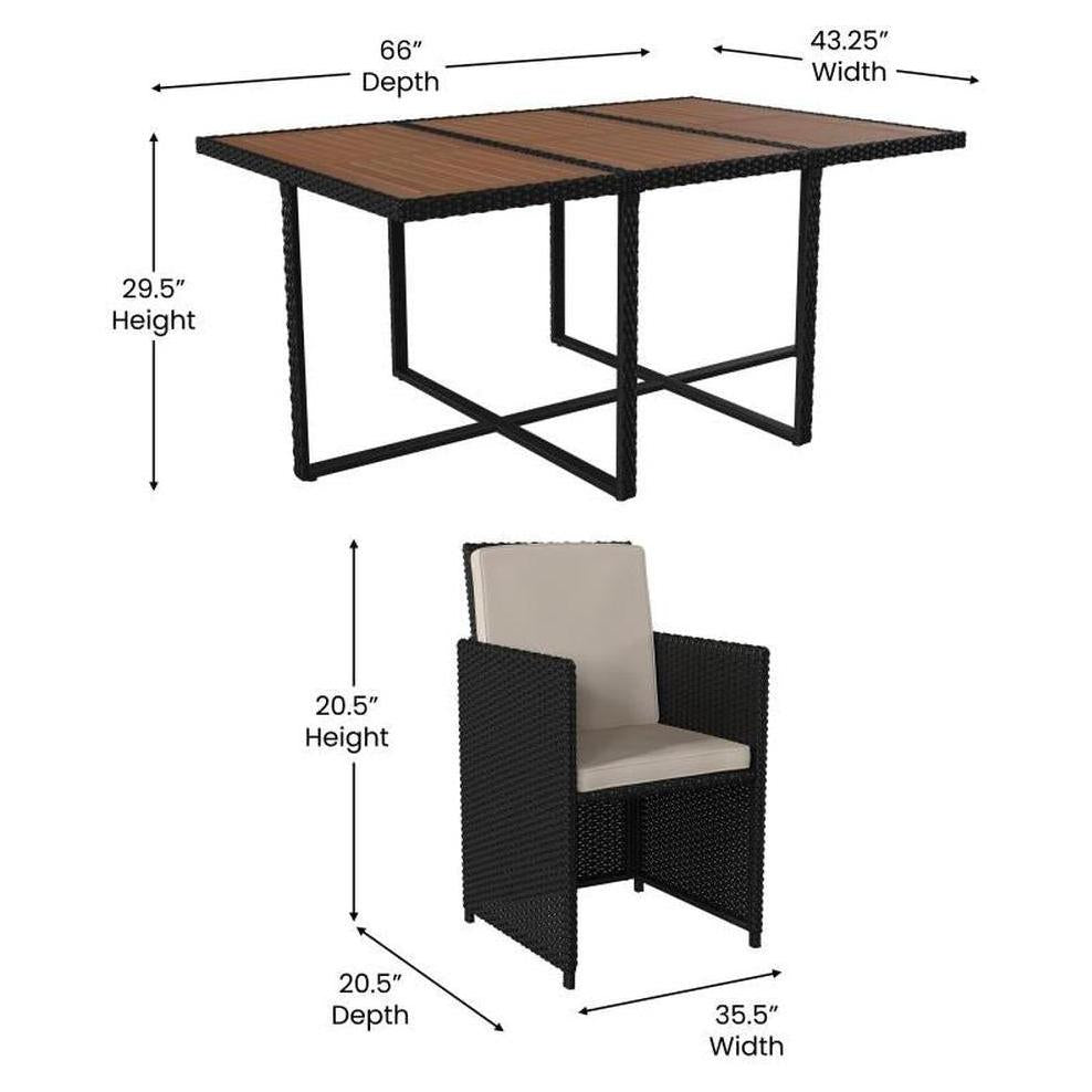 - Wicker and wood patio dining set ideal for the deck, backyard, sunroom, or porch