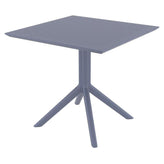 Outdoor dining set with two chairs and one square table. Made for commercial durability. Chairs are stackable. UV treated. Withstands outdoor temperatures summer and winter. Elegant and modern table has nonskid pads. Dining set is perfect for heavy use areas. Set items are 100% resistant to outdoors. Resin is virtually maintenance free. Table requires easy assembly. High quality commercial grade resin furniture - featuring refined designs, that are weatherproof, comfortable, and functional. Preferred for heavy use areas, pool sides, patios, beach and balcony use. Items are resistant to UV, salt, weather, sun tanning oils. |