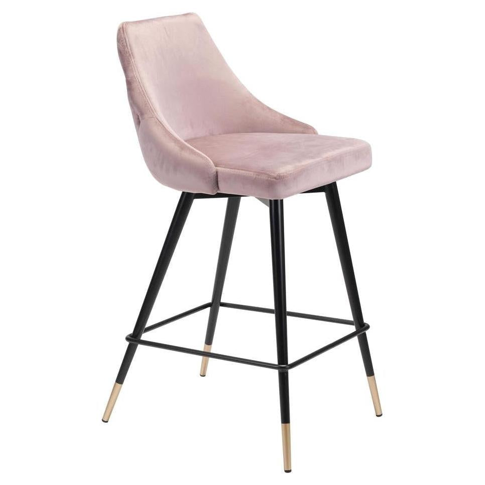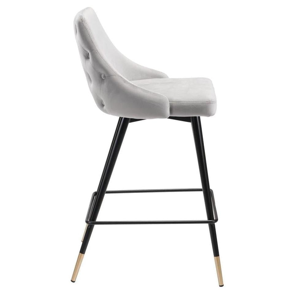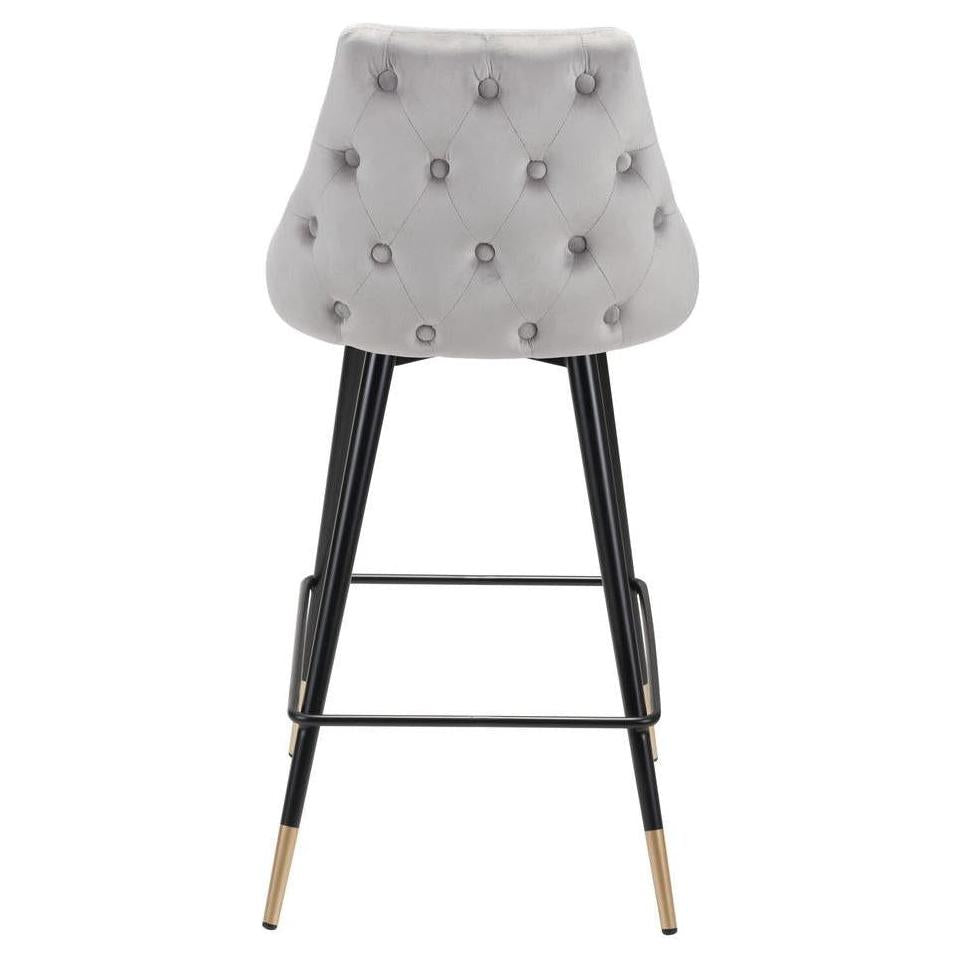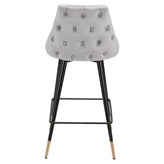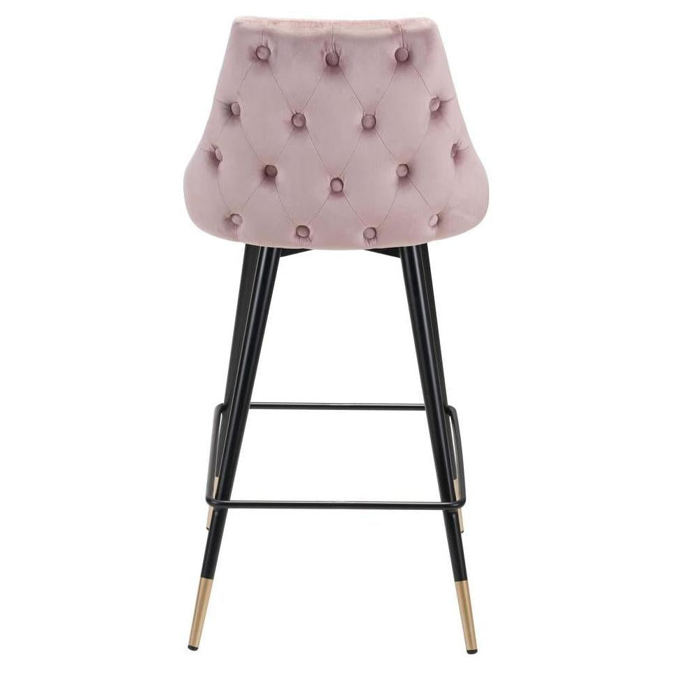 | If fashion is your passion, then this counter chair is for you. Make a statement around your kitchen island or counter height table. Its tapered back with button tufting is easy on the eyes and gorgeous from every angle. Support slats provide a comfortable footrest while seated. Slim pencil legs end in brushed brass, giving it an elegant finish. | |
