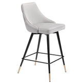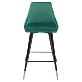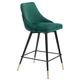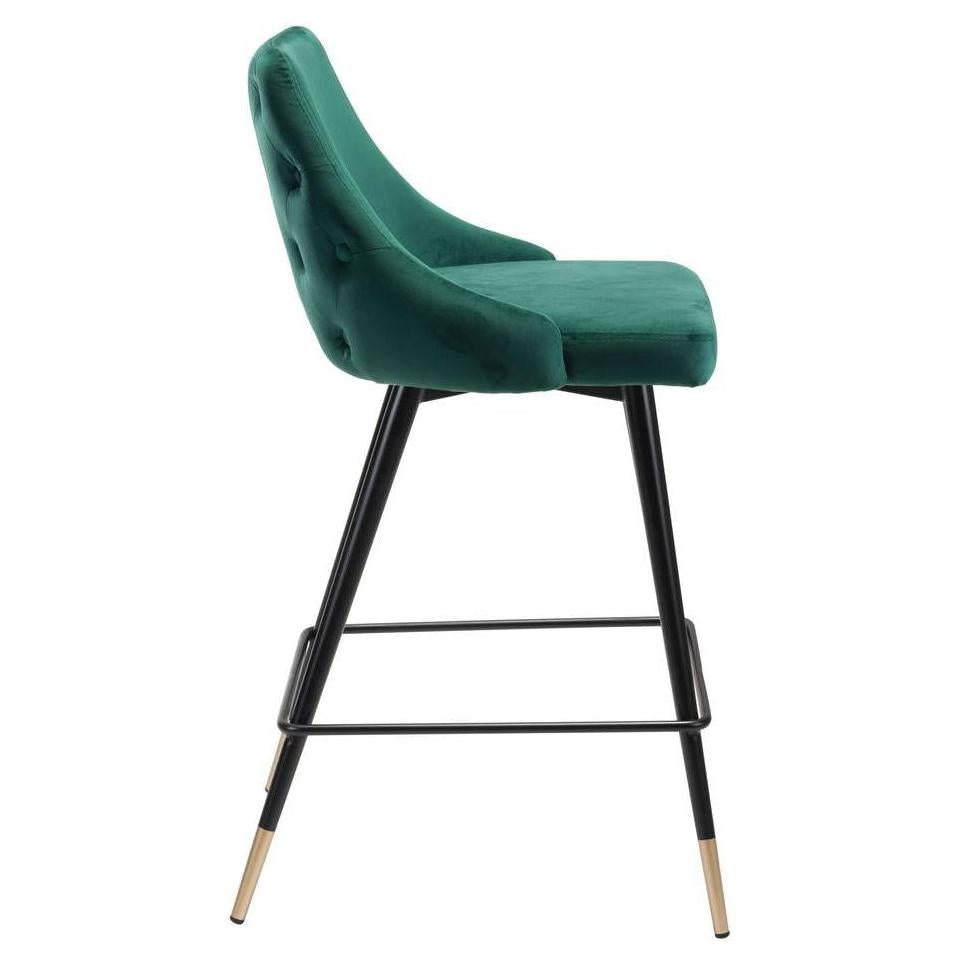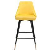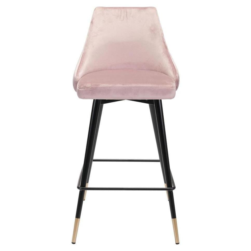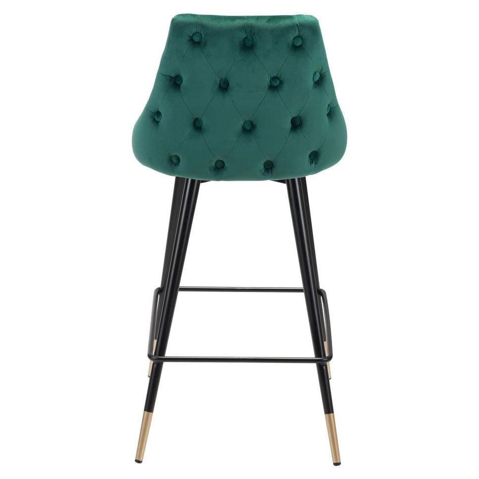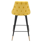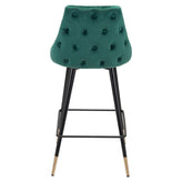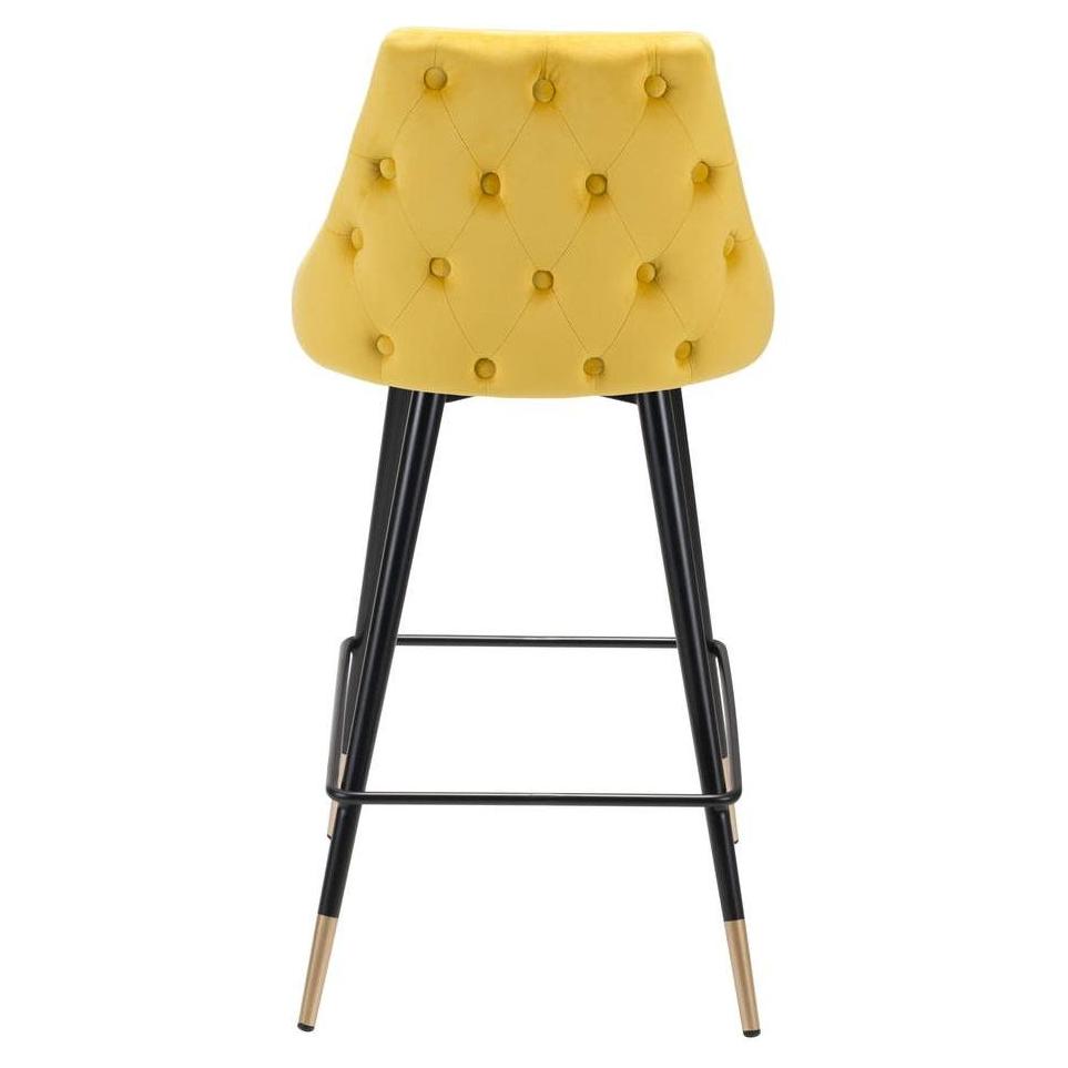 | If fashion is your passion, then this counter chair is for you. Make a statement around your kitchen island or counter height table. Its tapered back with button tufting is easy on the eyes and gorgeous from every angle. Support slats provide a comfortable footrest while seated. Slim pencil legs end in brushed brass, giving it an elegant finish. | |