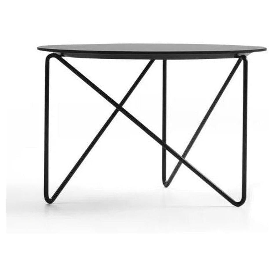 Polygon low table comes in two new sizes. Lower table with a diameter of 84 cm and a higher one with a 60 cm diameter. The tabletop can be made of solid wood, MDF with Fenix, or HPL suitable for outdoor use. Construction of metal rods bent into the shape of bracket makes an ideal match to a modernist typology of Polygon easy chair.