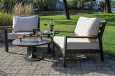 Portofino Orobico Sintered Stone & Aluminum Coffee Table, 20" Dia. is crafted from Powder-Coated Aluminum, Sintered Stone for a warm, natural look suited for commercial and residential outdoor settings.
