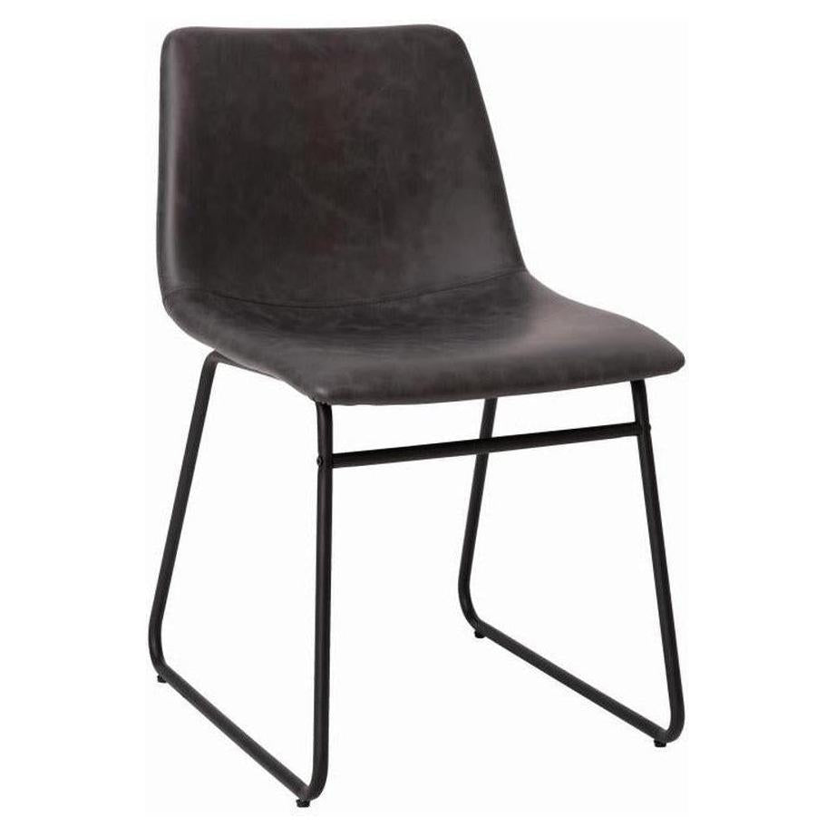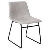 Comfortable sled base dining chairs with bucket seat provide a timeless and casual look