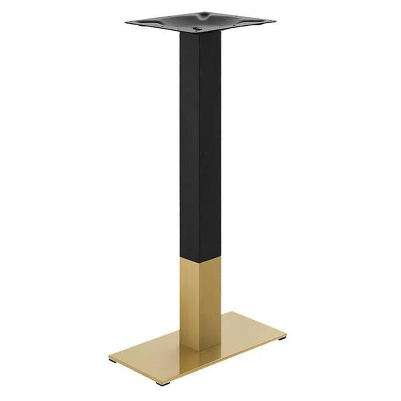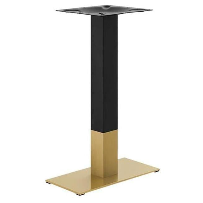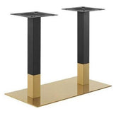 Enhance your restaurant, café, or bar with this stainless steel table base, available in a sleek gold and black finish. Designed for indoor use, this durable and stylish base provides reliable support for a variety of tabletops. Choose between *9" x 18" Single Column or 18" x 36" Double Column Rectangle base sizes, as well as standard height (28”) or bar height (41”) to fit your space’s needs. With a modern design and sturdy construction, this table base adds both stability and elegance to any dining area.