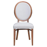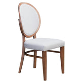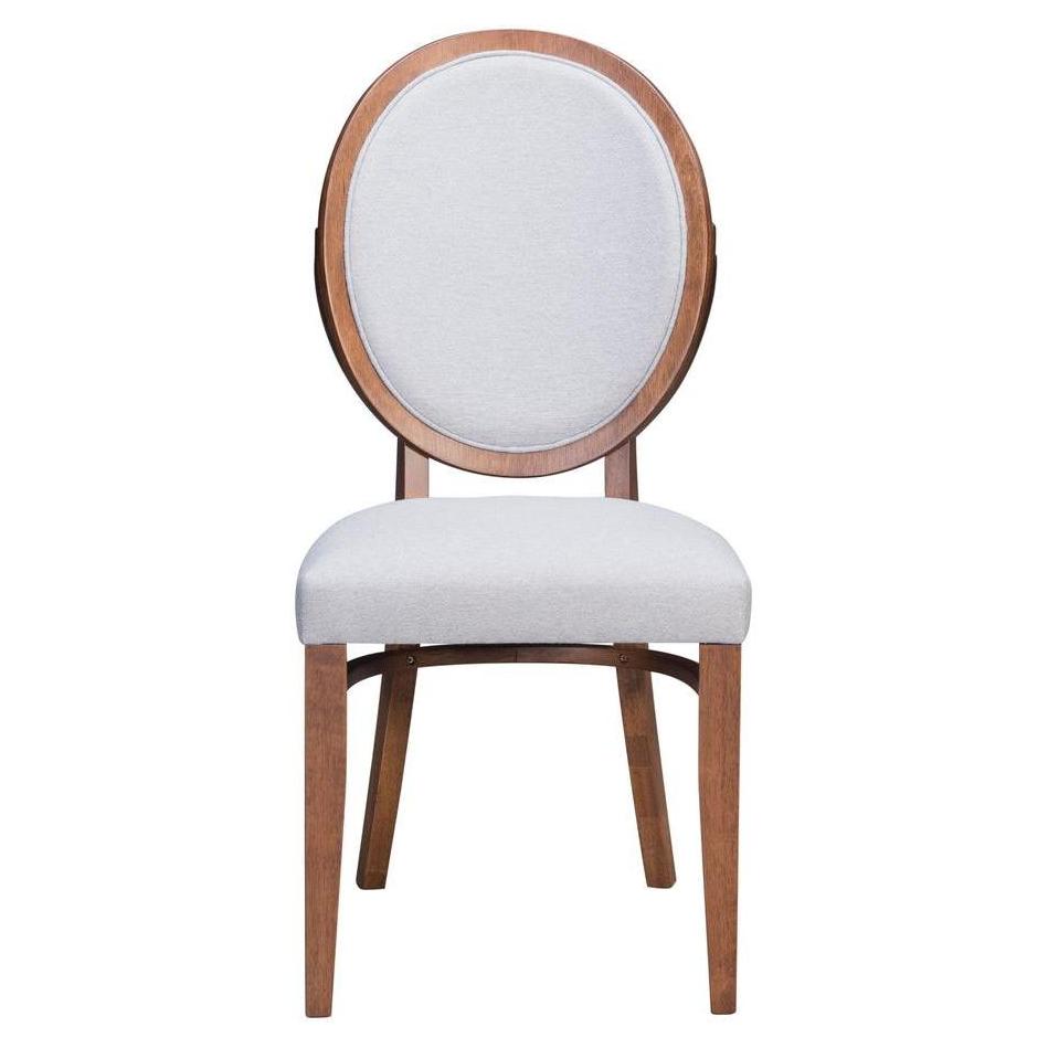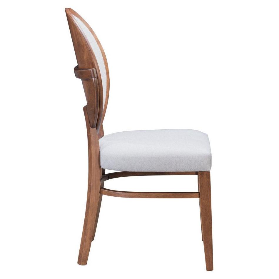The classic Louis chair goes modern in gorgeous walnut. Curved round back and padded seat are in light gray linen-like fabric, to give this typically formal chair a casual vibe. Decorative detail in the back makes it uniquely ours. |