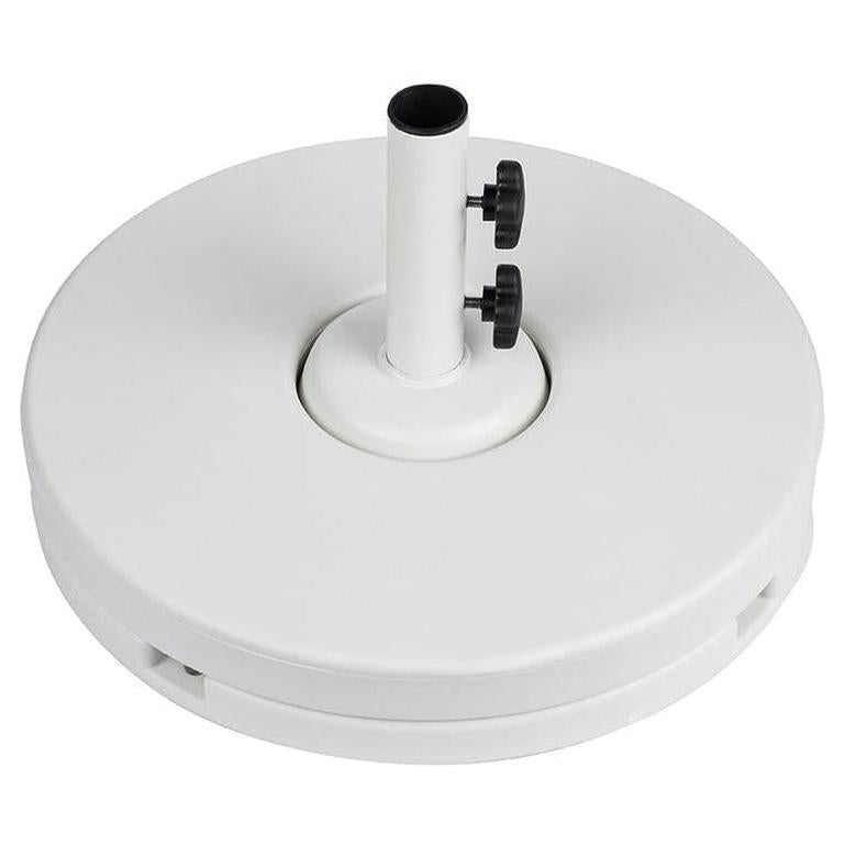 This Resin Coated Concrete Base 20" Round design, is available in black (BL), white (WH), silver mist (SM), and bronze (BZ). It can be used with Fiberglass Market Pulley Lift Umbrella, Fiberglass Market Crank Lift Umbrella & Aluminum Market Umbrella. It comes with a one-year manufacturer's warranty and our best price guarantee.