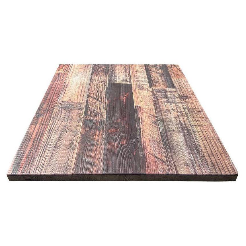 Designed to thrive outdoors, they are equally suitable for indoor use, providing a low-maintenance alternative to real reclaimed wood tables. Utilizing these tabletops both indoors and outdoors ensures a cohesive aesthetic for your establishment, creating a seamless look in both areas.