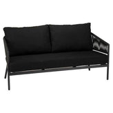 Inspired by the relaxed coastal style of Sanibel Island, this outdoor two-seat sofa combines modern design with durable construction for commercial patio environments. The powder-coated aluminum frame provides excellent resistance to outdoor elements, while the woven rope back adds texture and visual appeal. Plush outdoor cushions deliver comfortable seating for guests, making it an excellent choice for restaurant patios, hotel lounges, rooftop bars, and poolside settings.