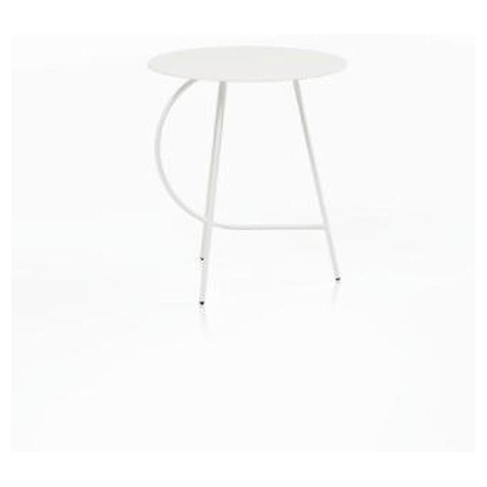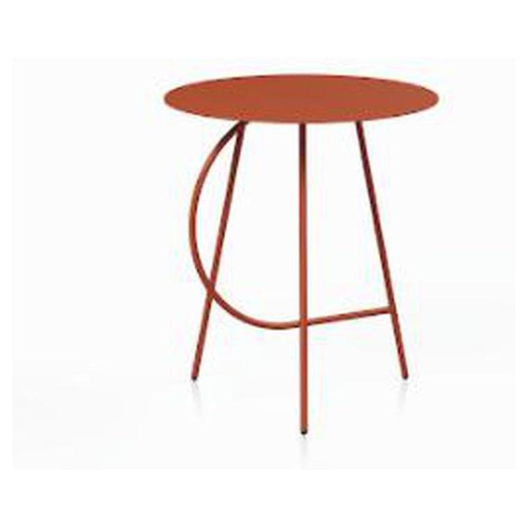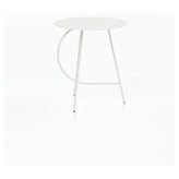 A modest, uncomplicated design that enhances any environment. The Sans collection is composed of two elegantly simple and minimalist tables. The refined aesthetic of the Sans tables was made possible by using only two solid steel rods for the base and one metal plate for the top. All pieces are welded together, making a monoblock piece. Using solid steel rods and a steel plate together yields a pure minimalist look that blends any ambiance fluently, also creates an absolutely strong table. Depending on the angle, you can view different letters of the alphabet formed by the steel wire legs of these tables. What you see are plain sans-serif letters. The defining characteristic of Sans is the gracefully rounded half-circle part of the base. This semicircle doubles as a handle and increases this table's portability.
