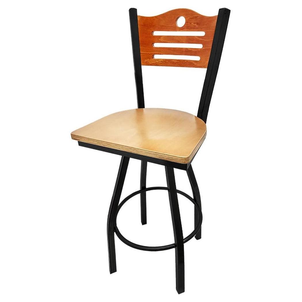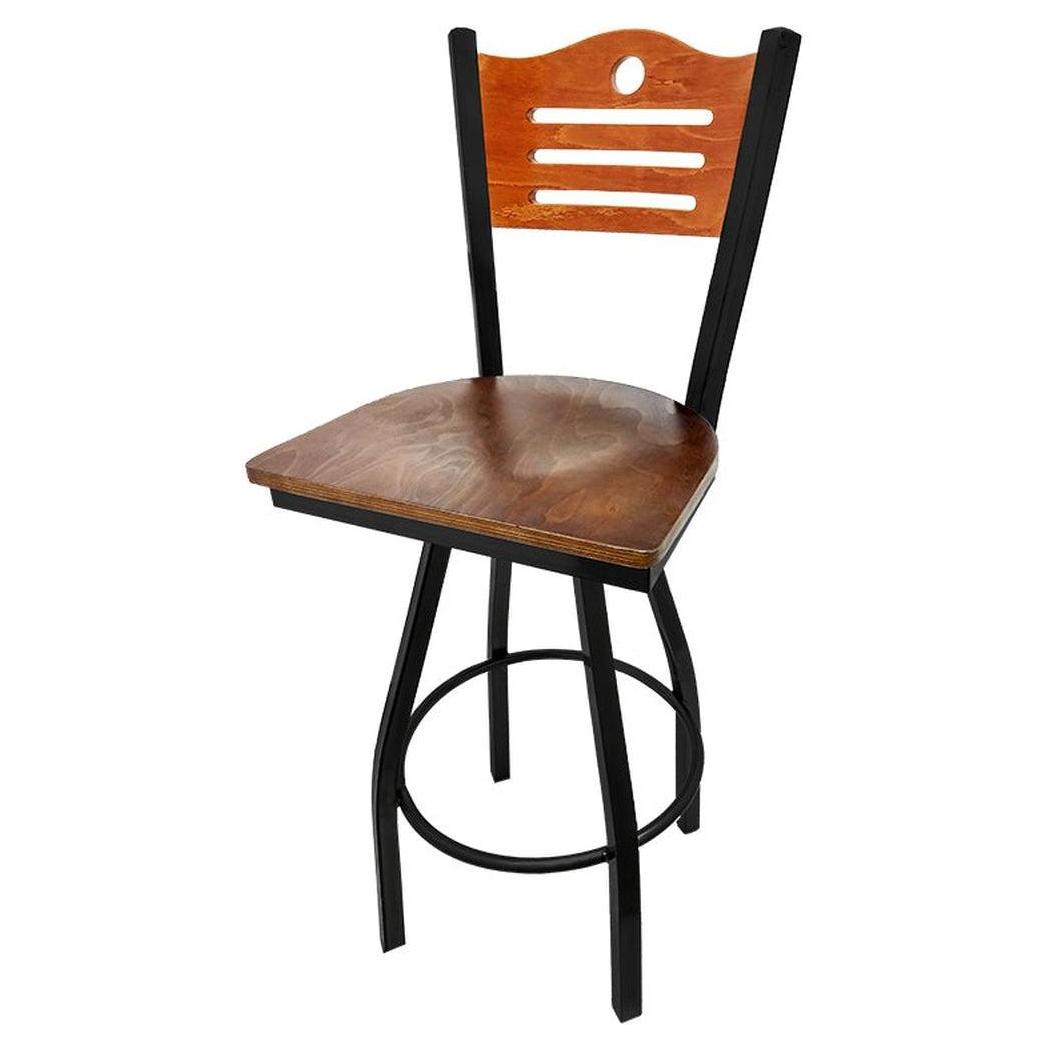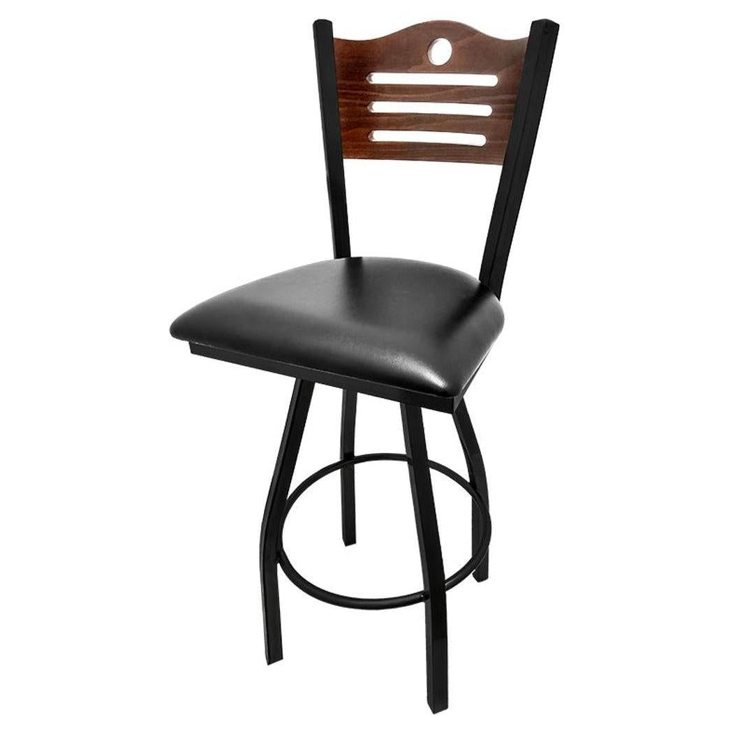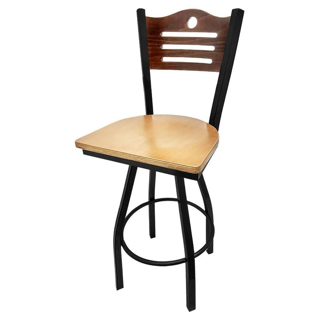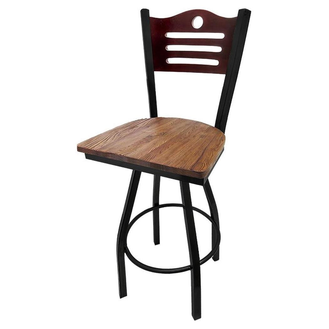 - Shoreline Wood Back Barstool with Black Swivel Frame