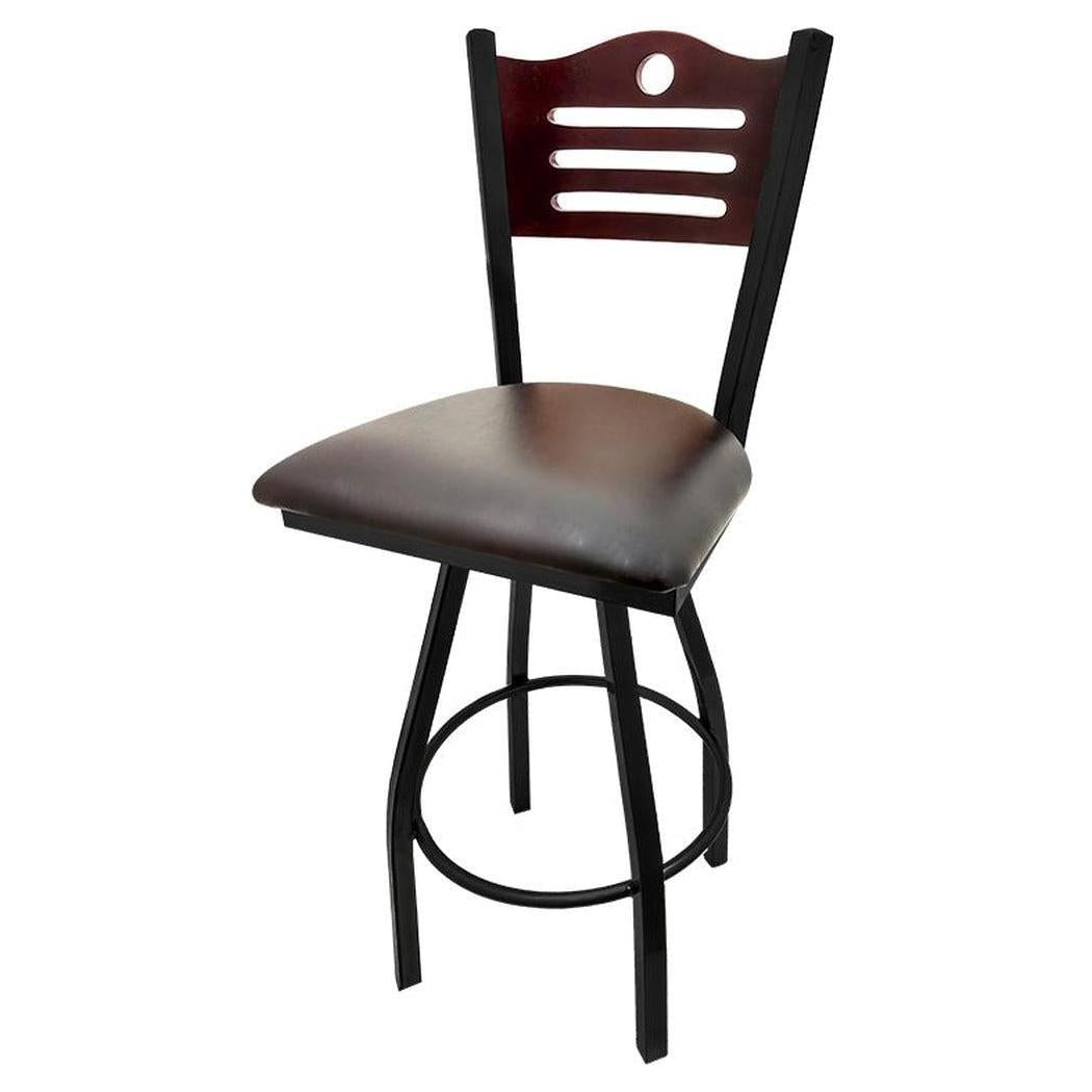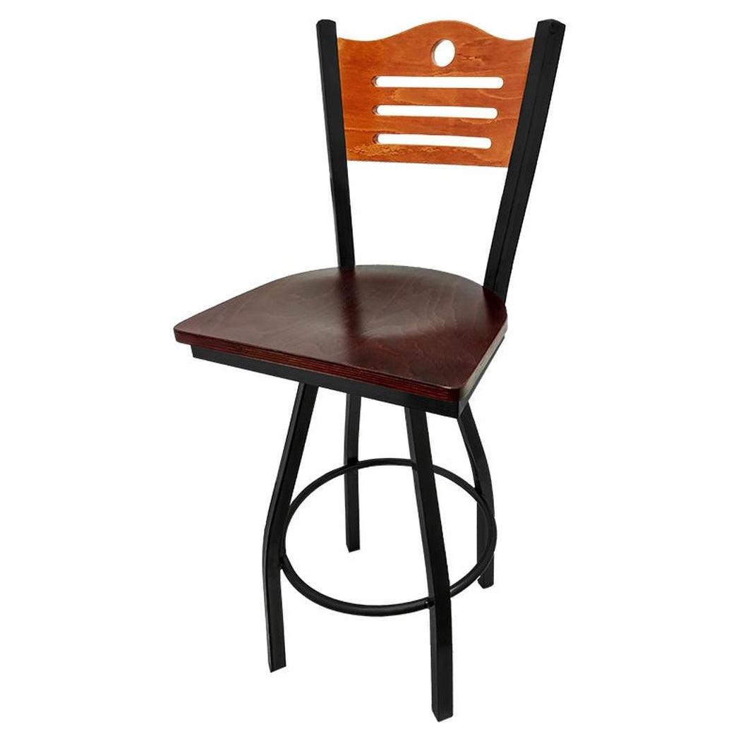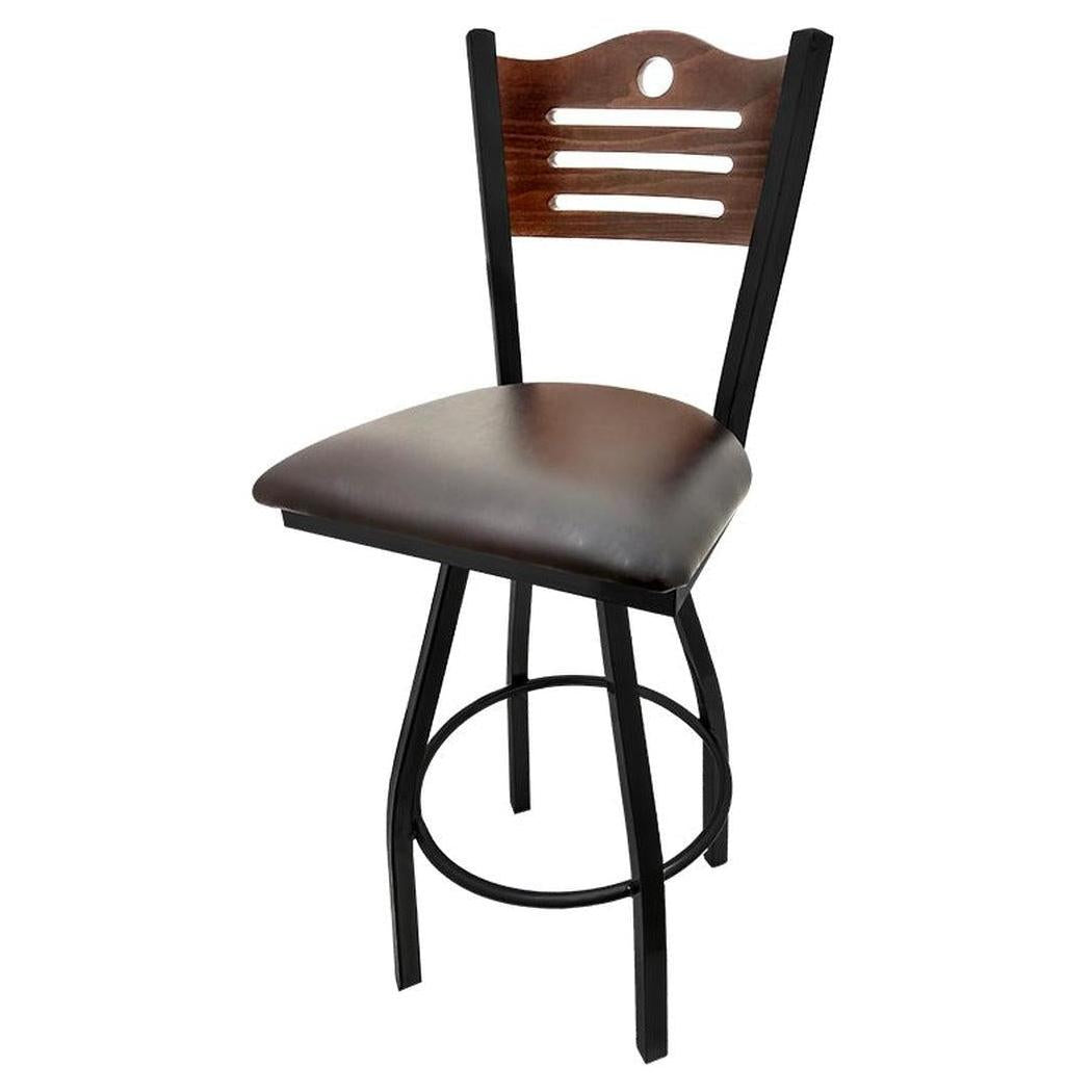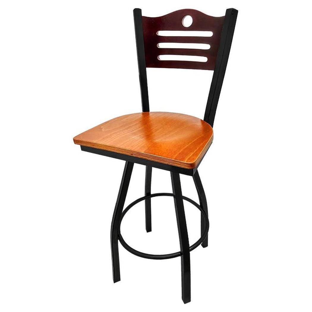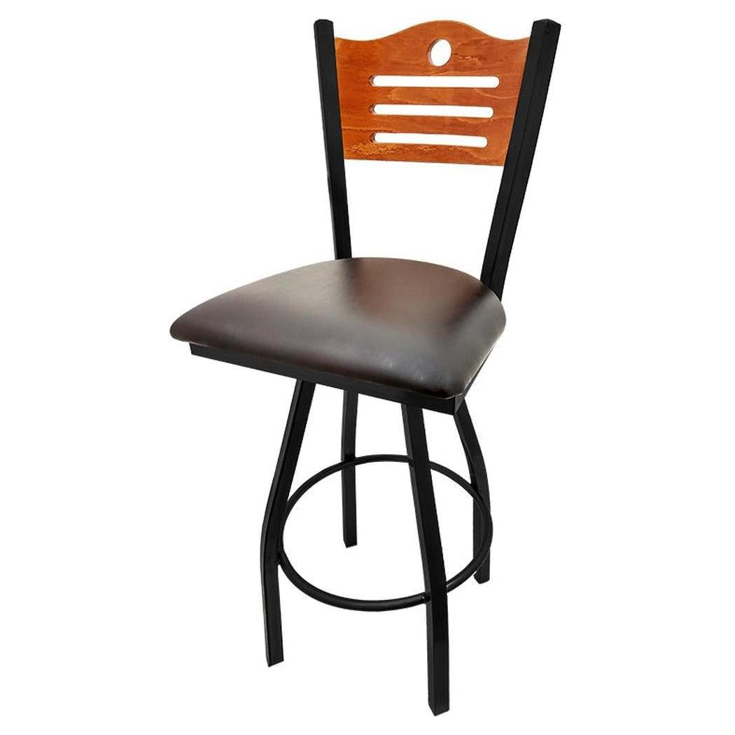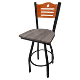 - Shoreline Wood Back Barstool with Black Swivel Frame