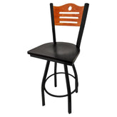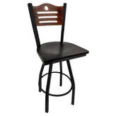 Shoreline Wood Back Barstool with Black Swivel Frame