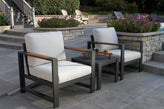 Sienna Black Aluminum Accent Table, 22" x 22" is crafted from Powder-Coated Aluminum for a warm, natural look suited for commercial and residential outdoor settings.