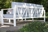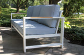 - Sienna White Outdoor Aluminum Sofa w Blue Cushions