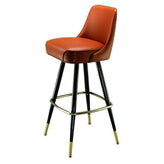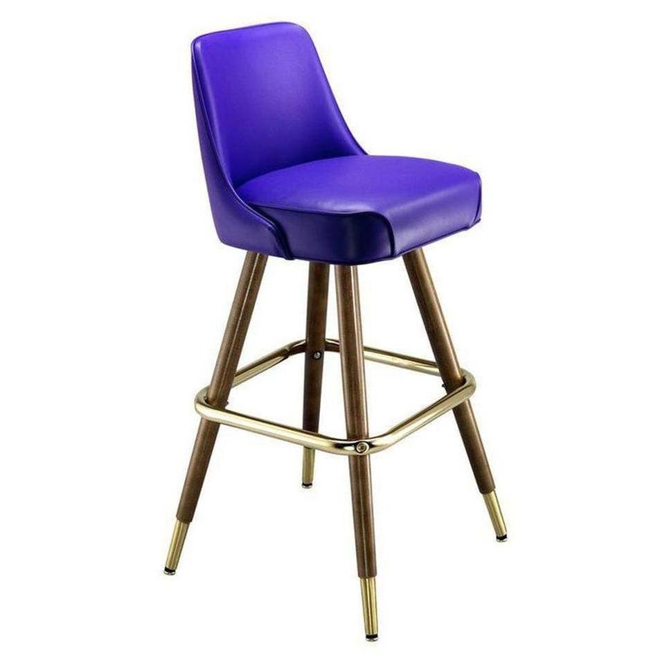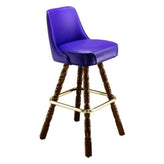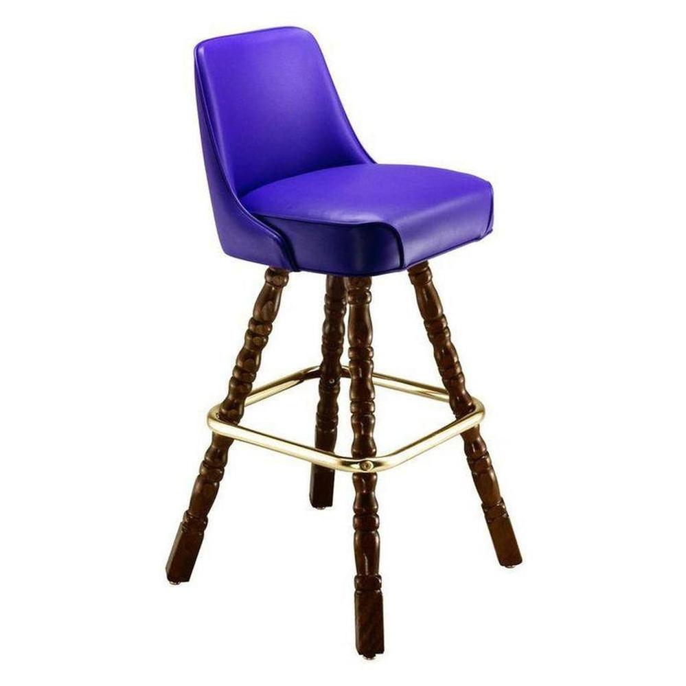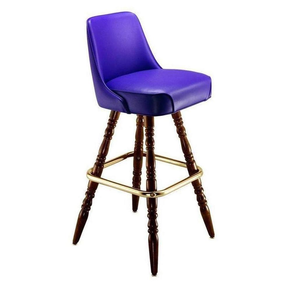 Depending on the leg, this signature bar stool can be referred to a model 2510, 6510, 6810, 7010. All units come standard with a heavy duty American made 90 degree return swivel. The 2510 uses a metal leg that can be done in black or brown. We offer both brass and chrome hardware. We also have the option to upgrade the glides to nylon bottom. The remaining model numbers refer to bar stools with wood legs. The wood used for the legs is hand spun maple and a special 8 ply plywood that is custom made for us. The legs use a pretty dark stain.
