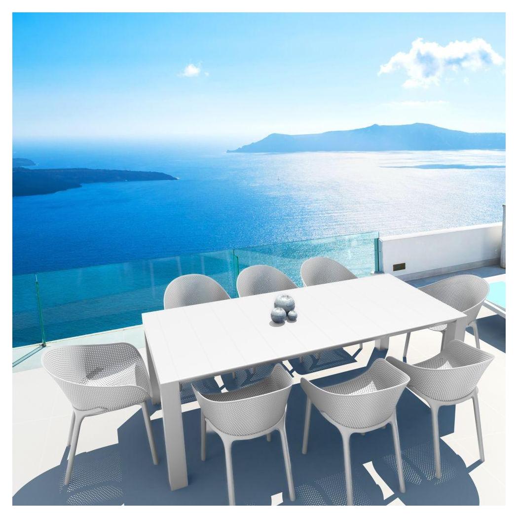 Our Sky Extendable Dining Set 9 Piece is of the highest quality, and is designed for commercial grade foodservice needs. Call to see if this product is available in other color or size options. This product is protected by our one year product warranty.