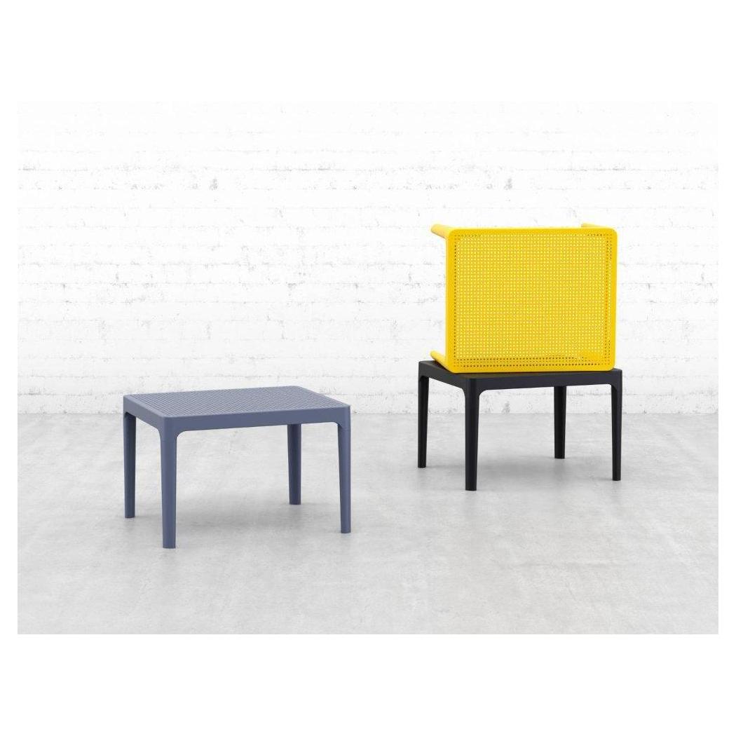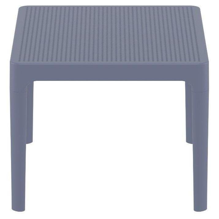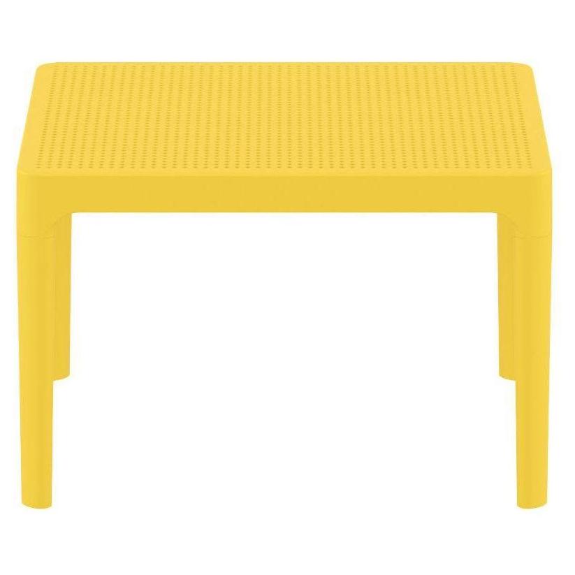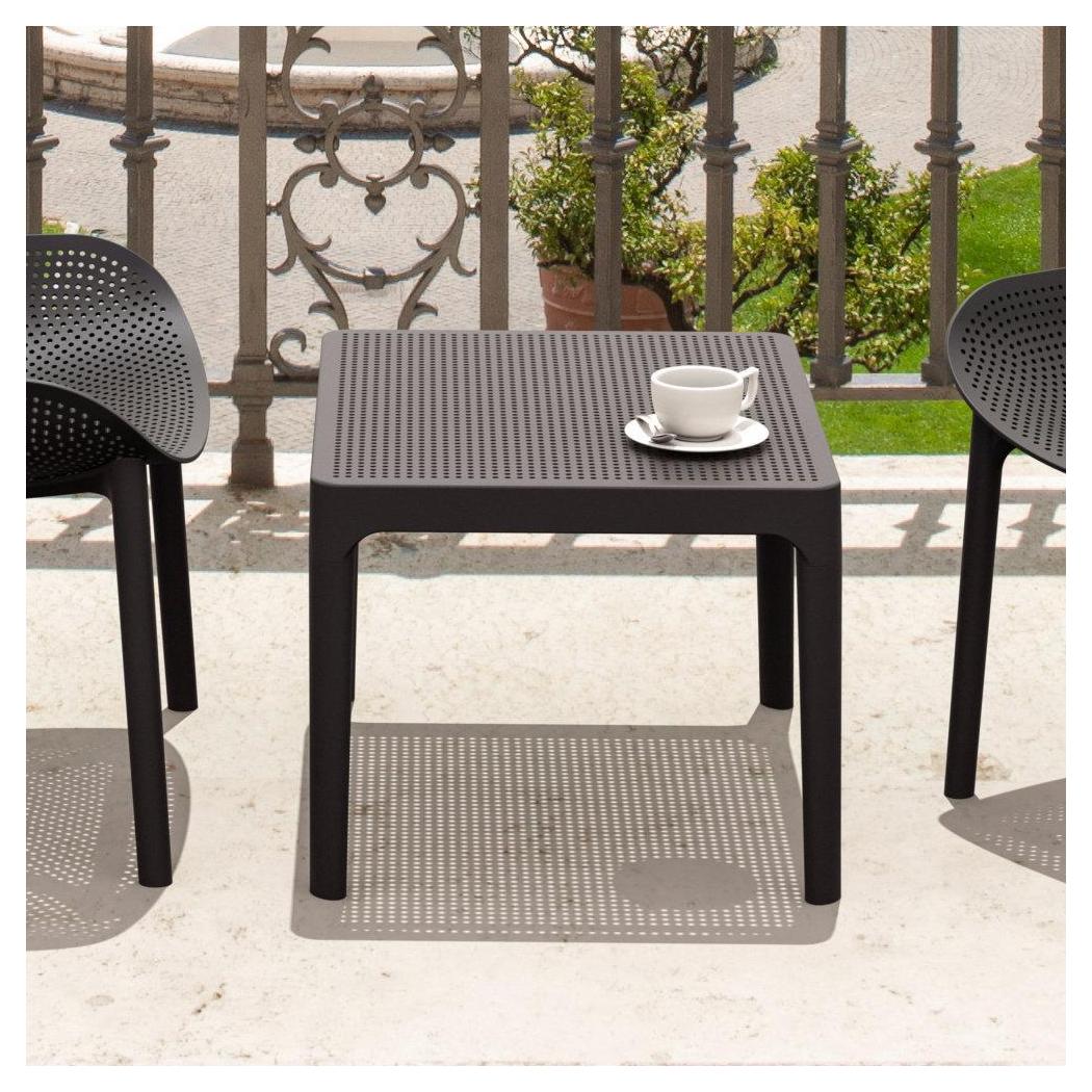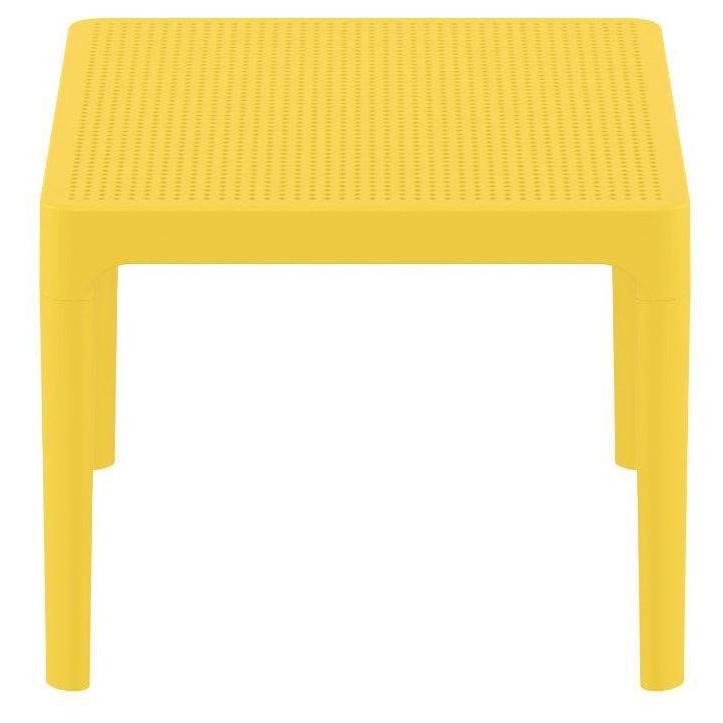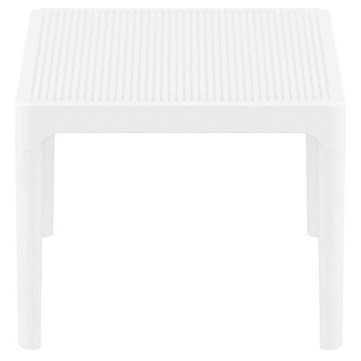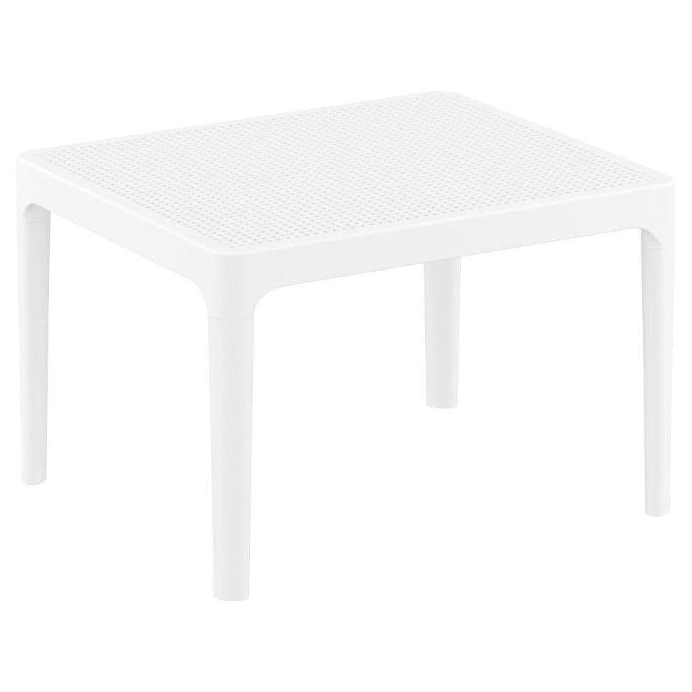 Sky side table. Resin top with the latest generation of thermoplastic legs. For indoor and outdoor use. Can be disassembled. High quality commercial grade resin furniture - featuring refined designs, that are weatherproof, comfortable, and functional. Preferred for heavy use areas, pool sides, patios, beach and balcony use. Items are resistant to UV, salt, weather, sun tanning oils.