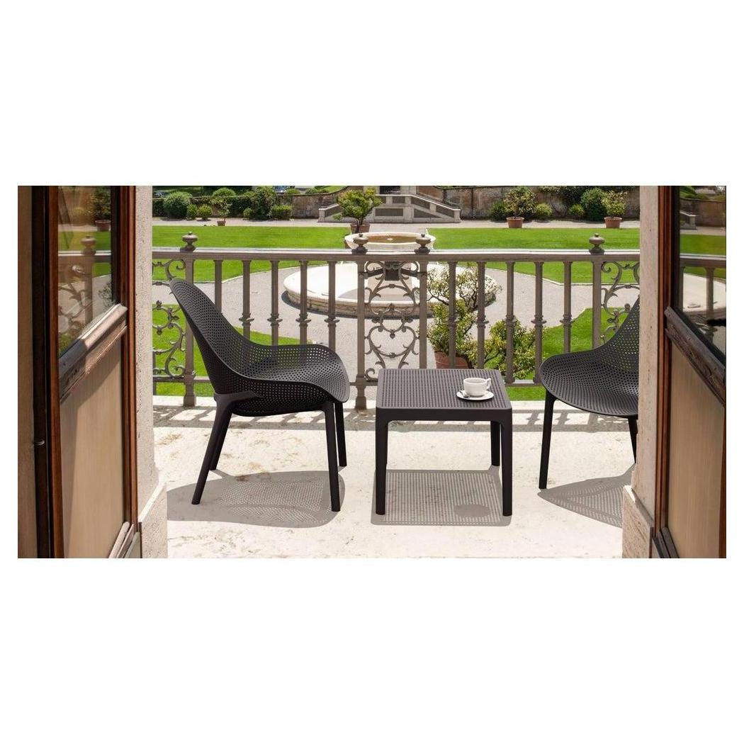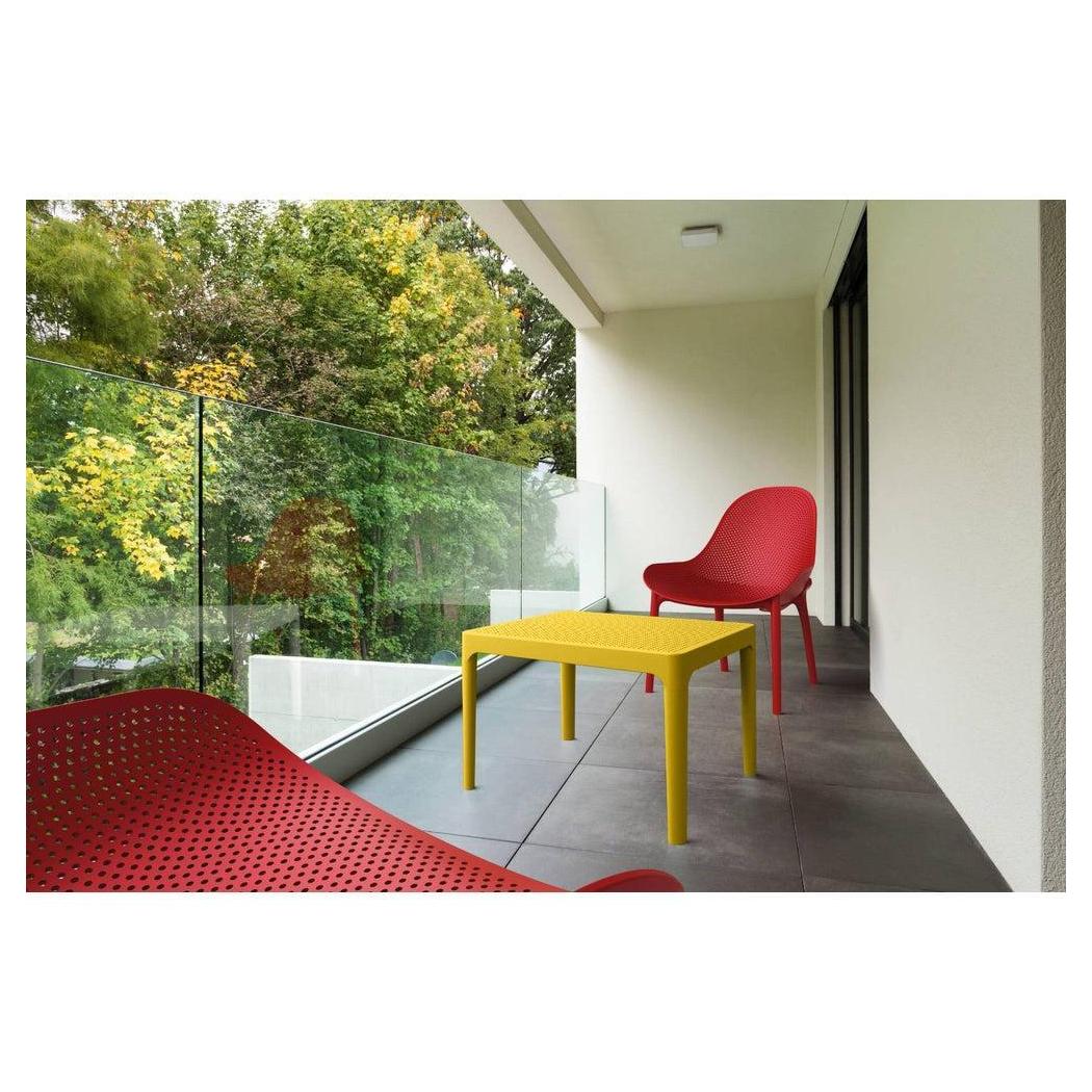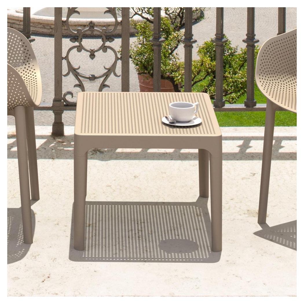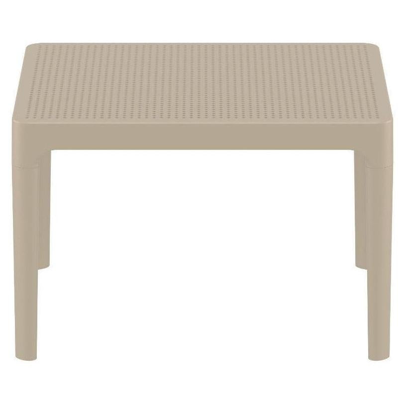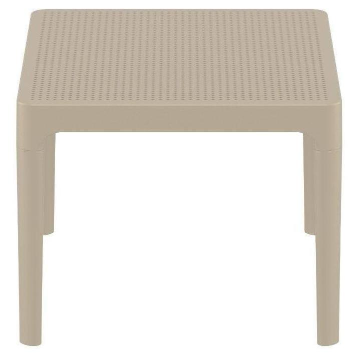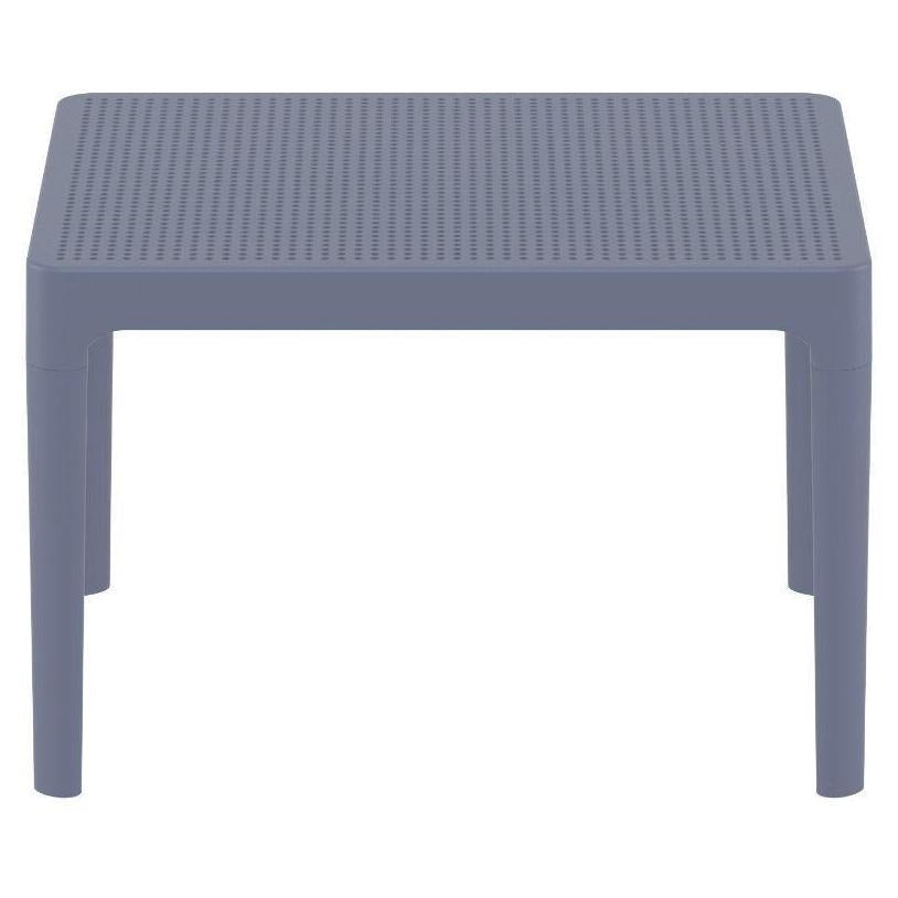 Sky side table. Resin top with the latest generation of thermoplastic legs. For indoor and outdoor use. Can be disassembled. High quality commercial grade resin furniture - featuring refined designs, that are weatherproof, comfortable, and functional. Preferred for heavy use areas, pool sides, patios, beach and balcony use. Items are resistant to UV, salt, weather, sun tanning oils.