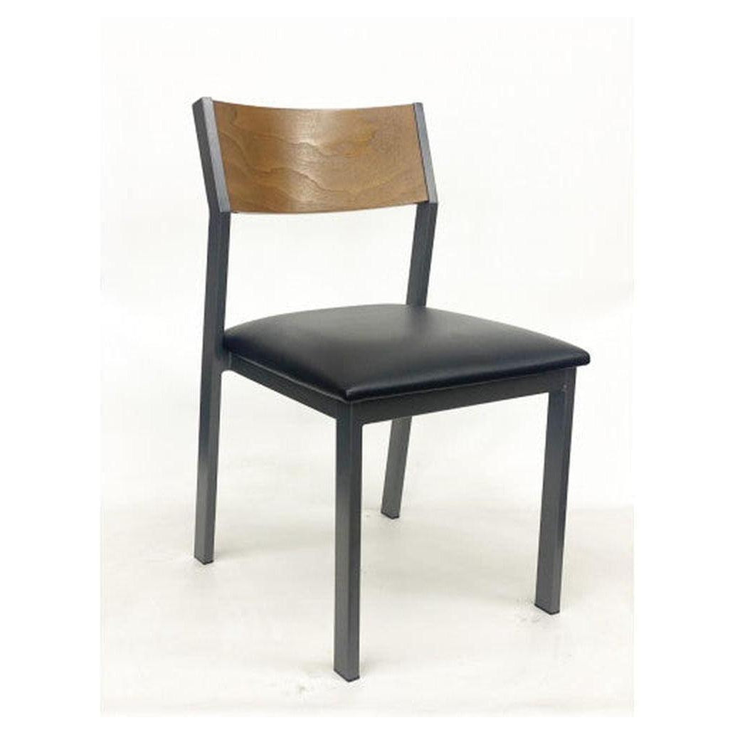 Dark Gray Metal Frame / Light Walnut Plywood Back / Black vinyl Cushion