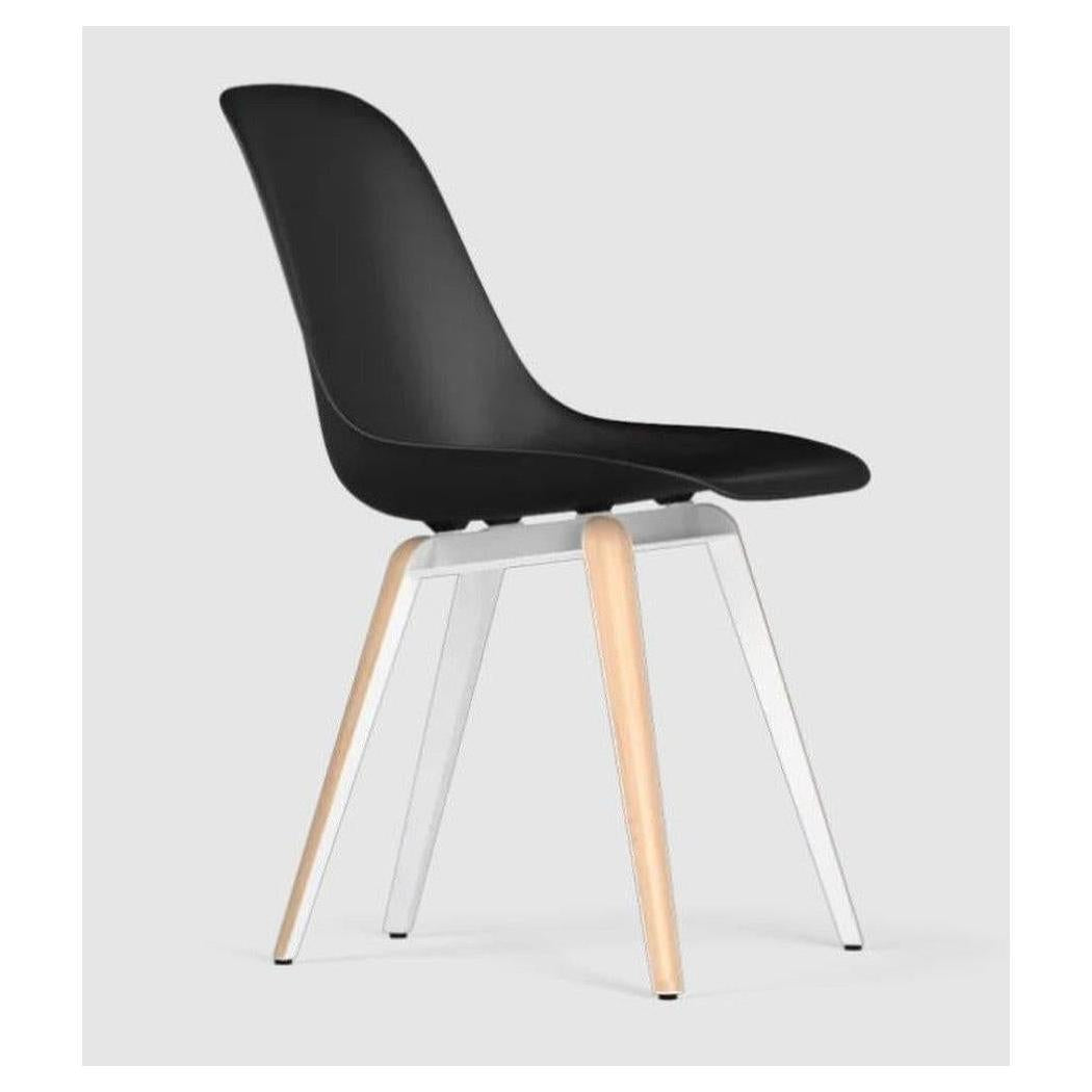 Smooth as glass, the Slice base is the perfect example of a design that combines functionality and a graceful silhouette. With its minimalistic design Slice allows its materials to do the talking: the inserts, which have all the warmth of wood, slide on the metal frame of the legs and are connected via the magnets placed in the feet, which can be removed and repainted. Slice is a light and elegant base, perfect in its simplicity. The Double V9 chair is made of plastic material that is colored through and through and UV-resistant. As a result, the chair stays nice for a long time and always retains its color even with prolonged exposure to sunlight. The metal base is also neatly finished with a matte powder coating. This gives the chair a modern touch.