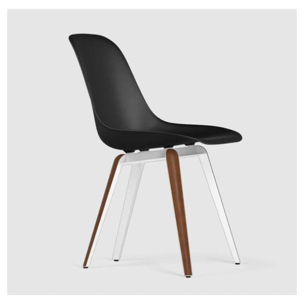 White steel base in Walnut, black and natural stained ash wood sleeves.