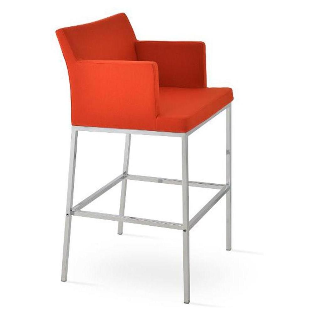 This Soho Metal Armchair is a commercial grade chair designed to last and look great in your restaurant. The chair fits in nicely for restaurants desiring a modern design. It is made of metal, wool fabric. There is a wide range of colors for this chair. This product is backed by our customer satisfaction return policy and our best price guarantee.