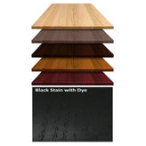 Stain options: Black, Dark Walnut, Clear Coat, Cherry, Mahogany, Honey, Pecan & Slate Gray (please call for stain samples)