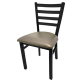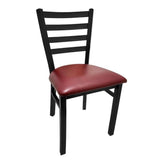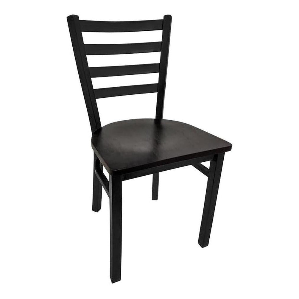 Upgrade your seating with the Standard Ladderback Chair, designed for durability and classic appeal. Built with a 1.2mm steel frame and 1-1/4" tubing, this 100% welded frame ensures strength and stability, supporting up to 300 lbs. The premium black powder coat wrinkle finish enhances durability while adding a sleek, professional look.