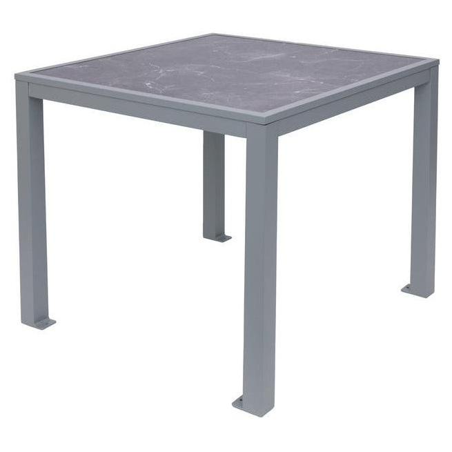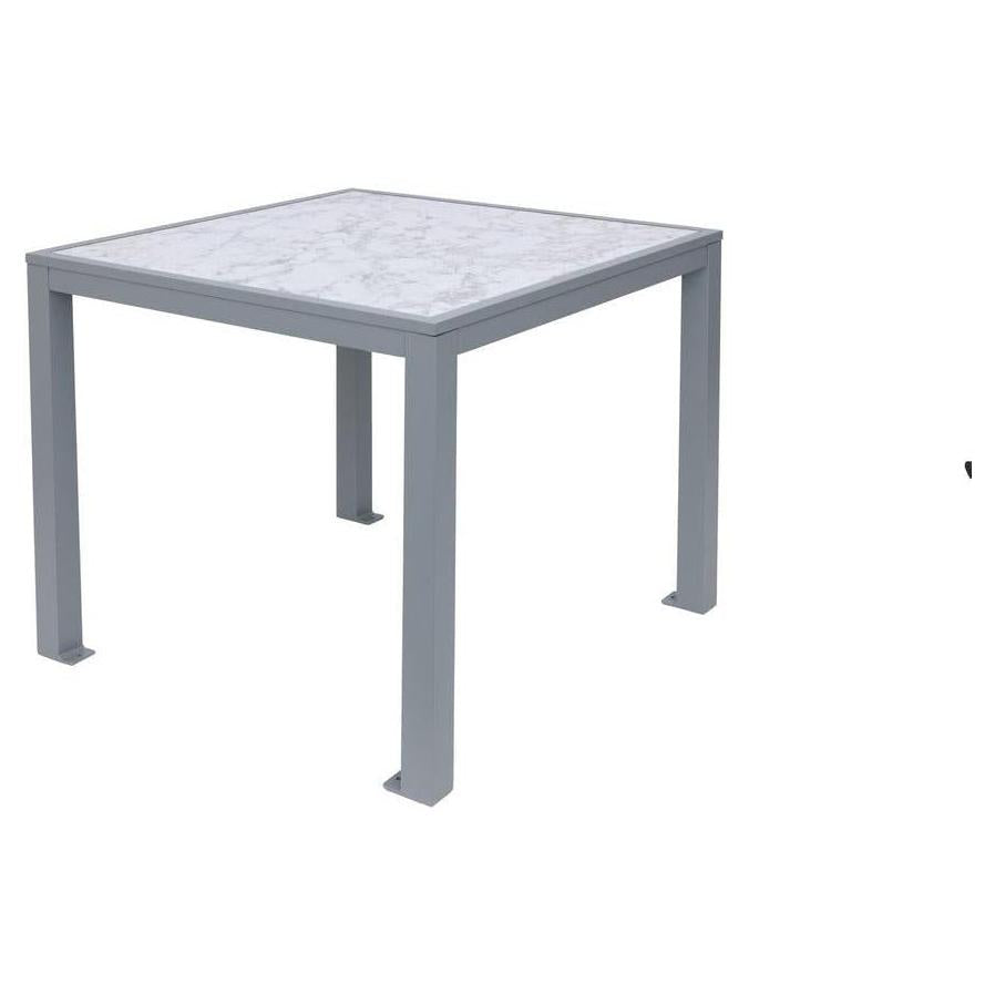 This sleek, outdoor Surf bolt-down dining table features a modern design. It is available in soft gray and black powder coat finishes. It features a compact laminate inlay of either Carrara or Pietro marble. Umbrella hole on request & optional weighted umbrella base required (#UB50RD). It ships knocked down and requires assembly. It comes with a one-year manufacturer's warranty and our best price guarantee.