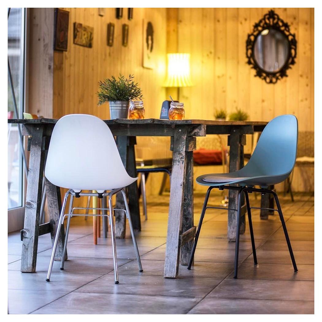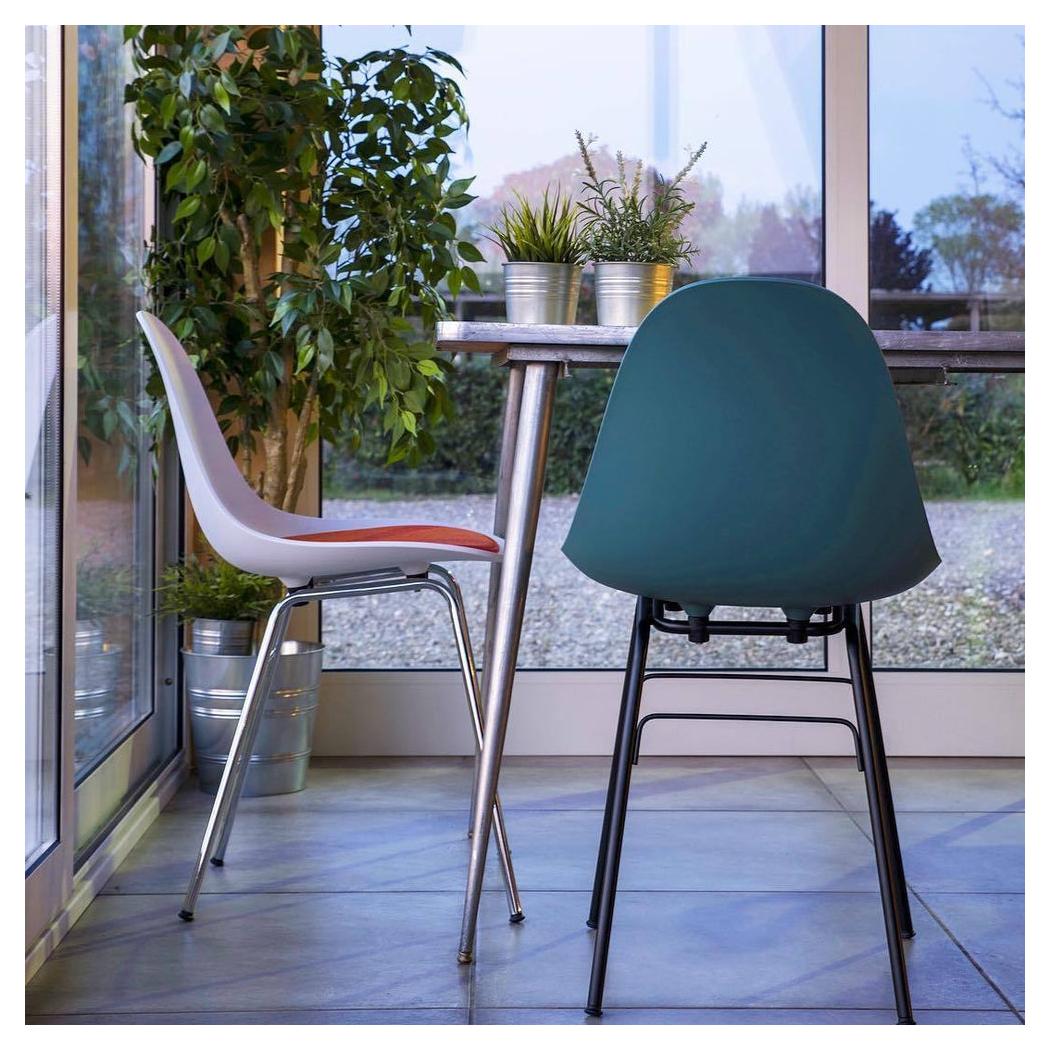 This TA Side Chair with Er Base with various colored Seat is a commercial grade chair designed to last and look great in your restaurant. The chair works great for modern or contemporary designs. It is an armless chair and is made of resin/plastic, fiberglass, wood, and metal designed for the budget price point. This chair is available in chrome and black. This product is protected by our low price guarantee and our customer satisfaction return policy.